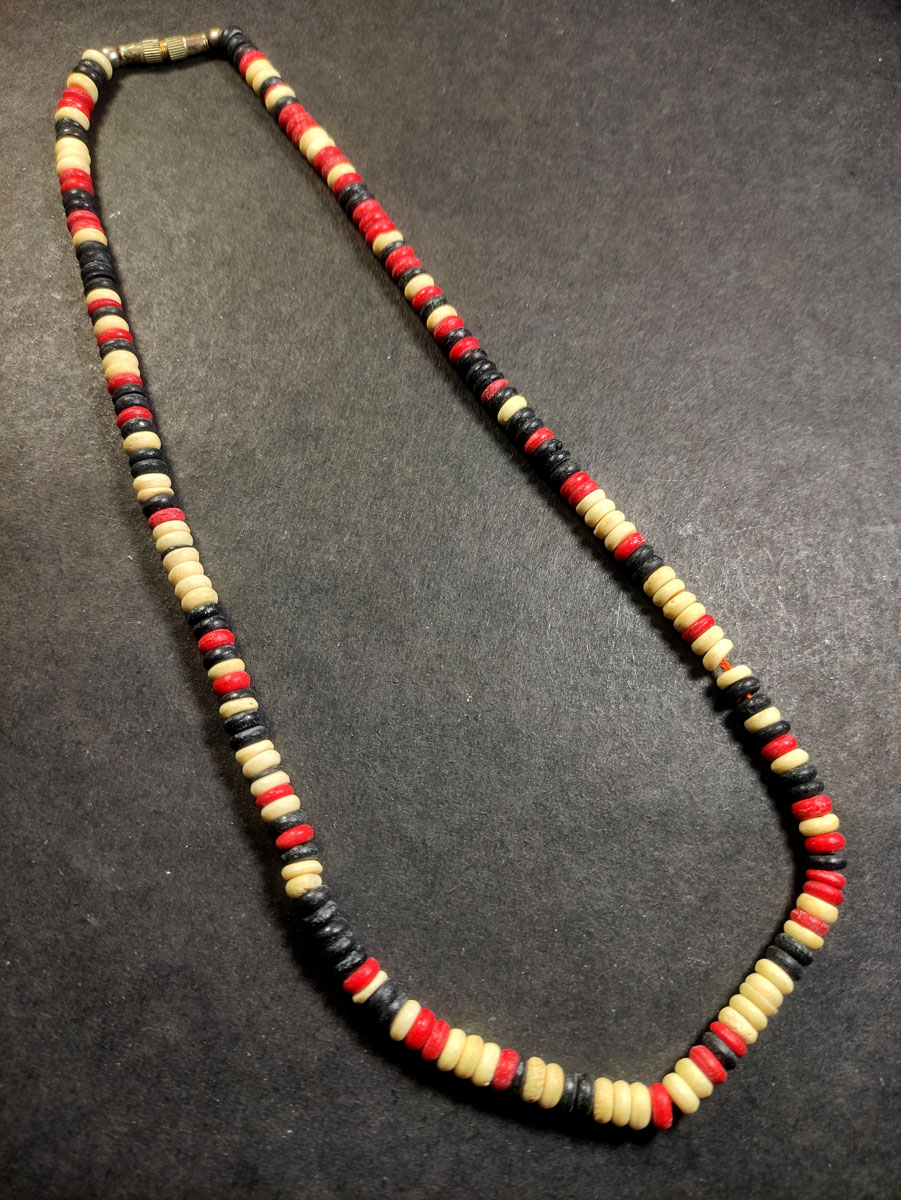 It is an Ethnic Tibetan design with natural multi color beads Necklace. The beads are made of Bovine bone.