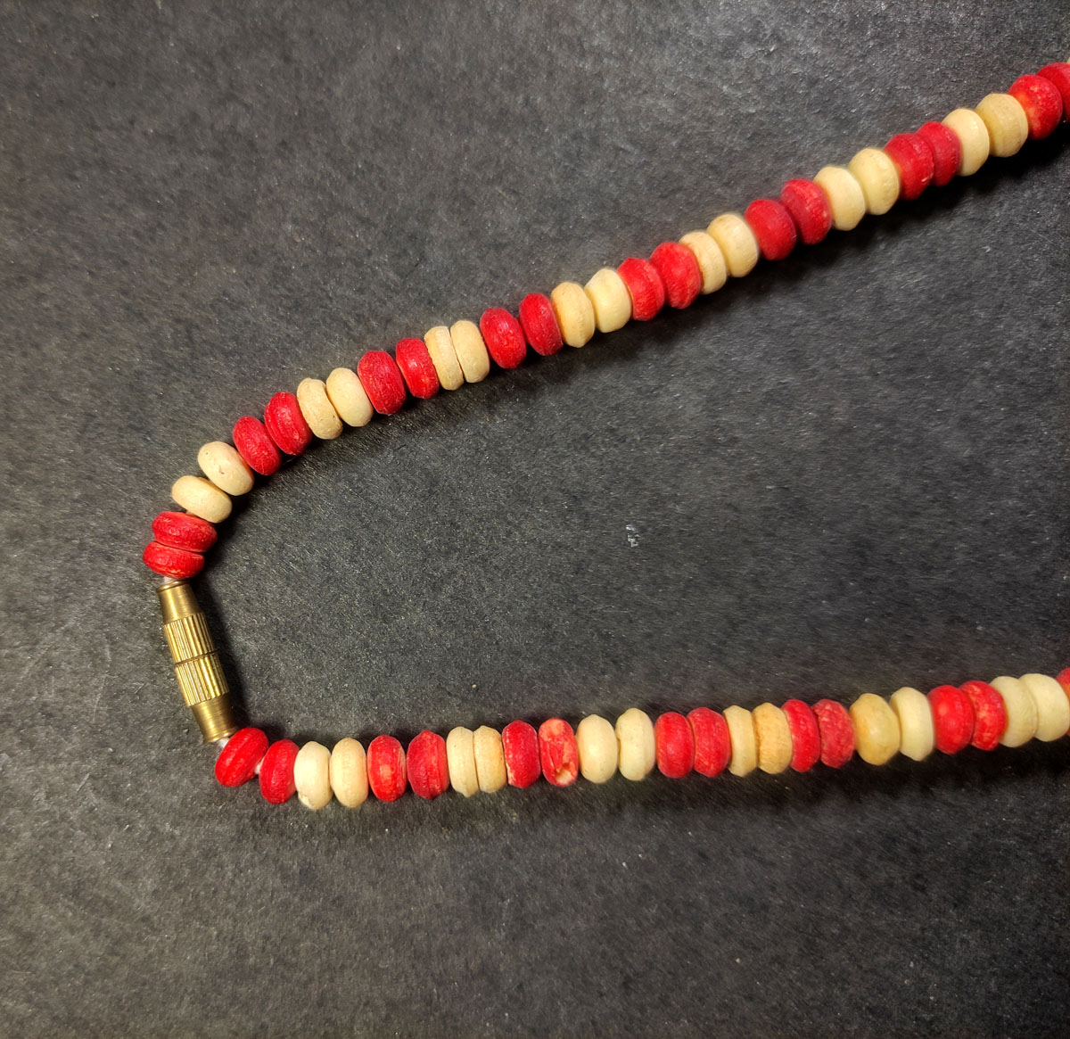 It is an Ethnic Tibetan design with natural multi color beads Necklace. The beads are made of Bovine bone.