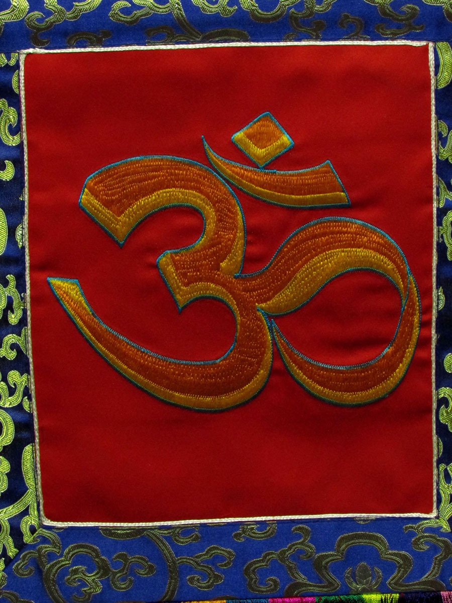 This is a beautiful silk brocade wall hanging from Nepal. At the center Sanskrit Om is decorated with beautiful hand woven silk embroidery and there is high quality brocade border. They are handmade by the highly skilled and experienced local artisans in Nepal.