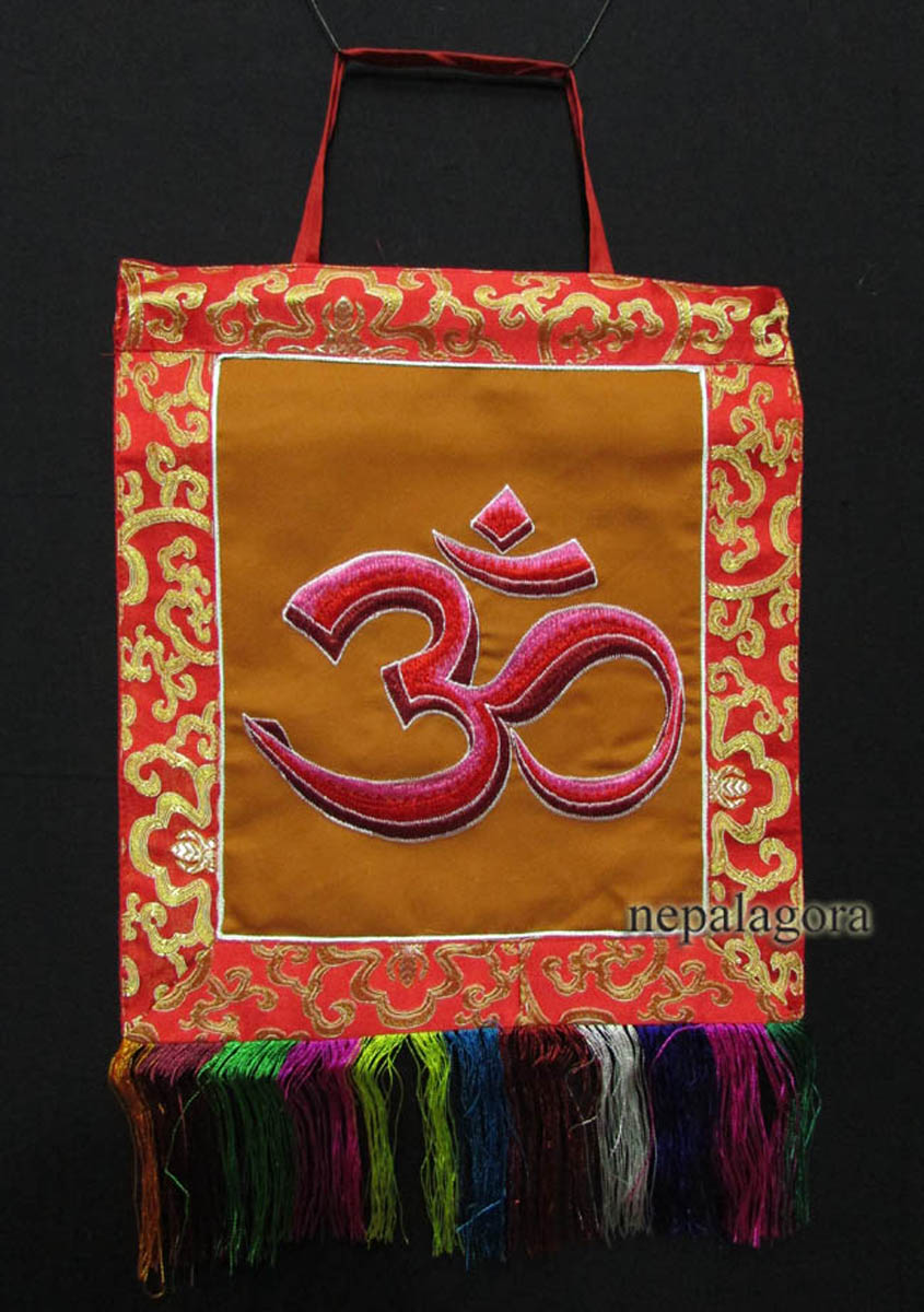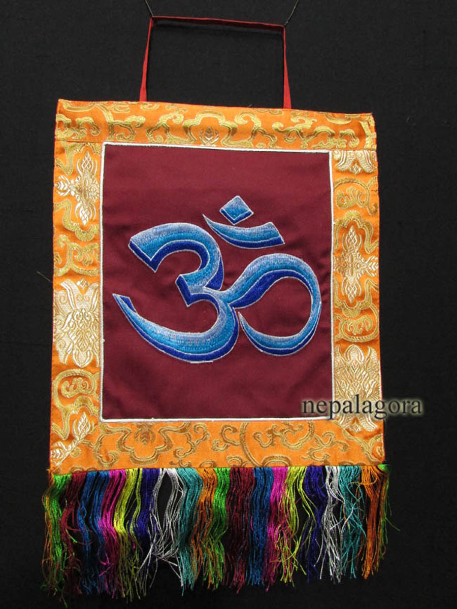 This is a beautiful silk brocade wall hanging from Nepal. At the center Sanskrit Om is decorated with beautiful hand woven silk embroidery and there is high quality brocade border. They are handmade by the highly skilled and experienced local artisans in Nepal.