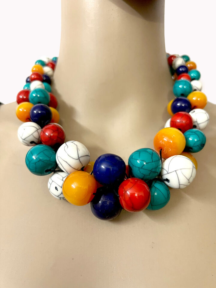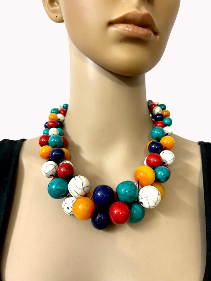 Tribal Fashionable Multi-Color Resin Beads Necklace