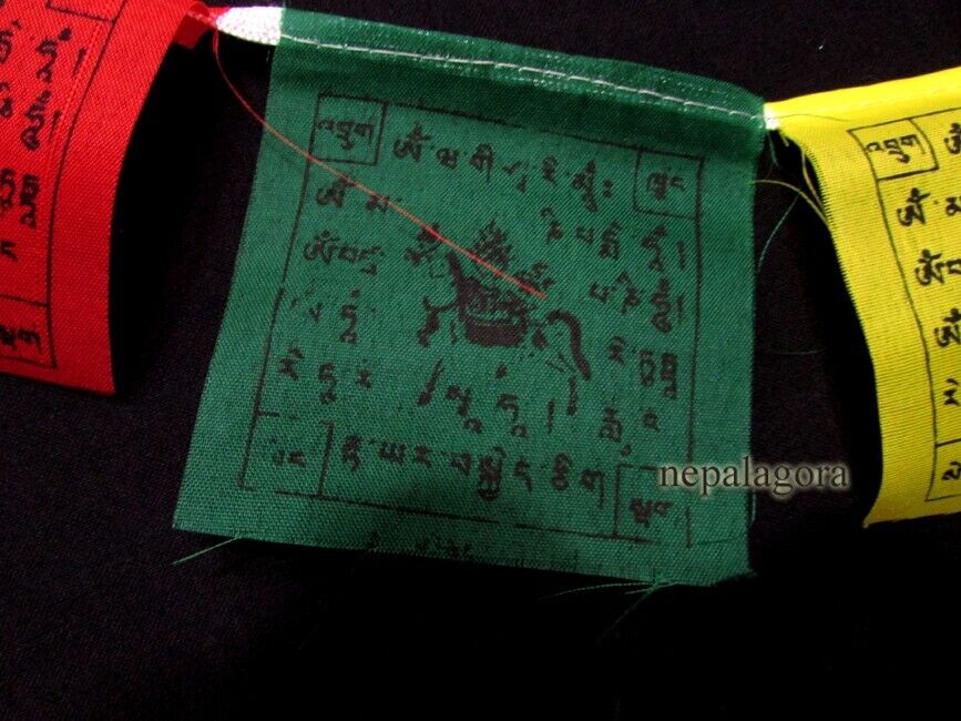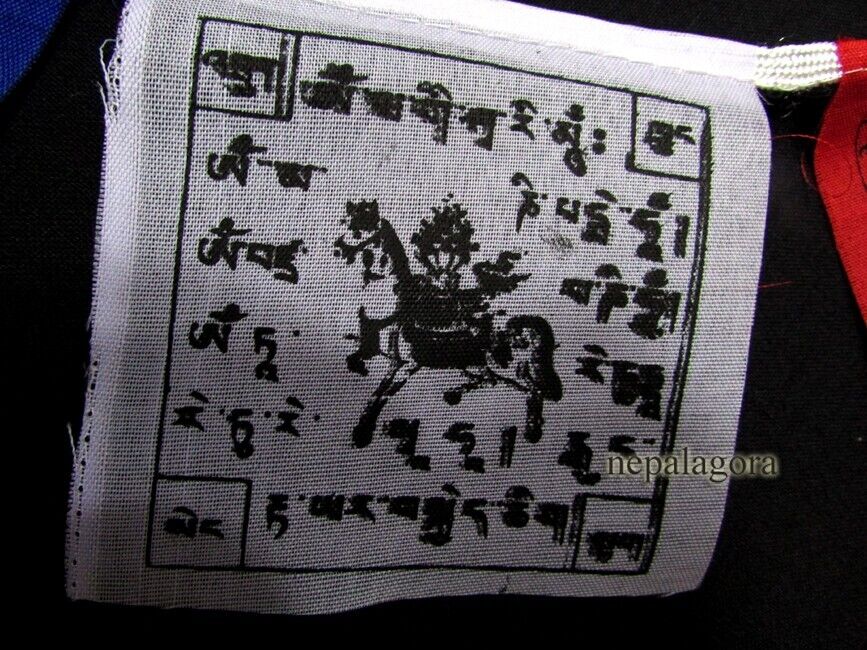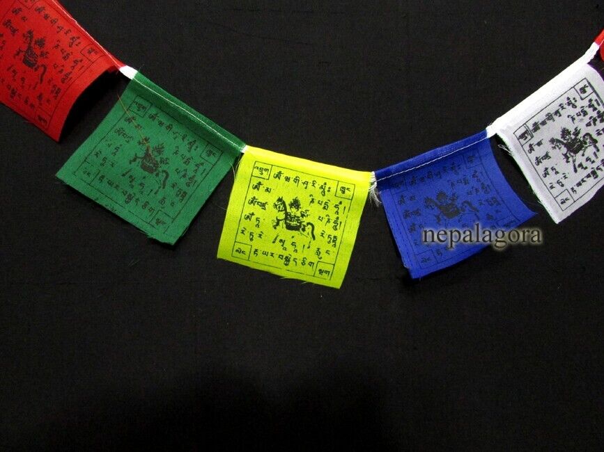 The flag is a string of 10 flags, each with a different Tibetan fundamental color, making it a stunning and eye-catching addition to any home or meditation space.