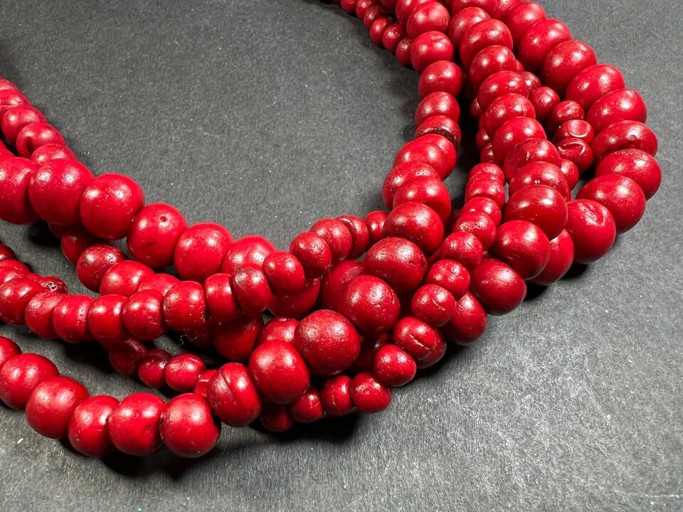 This stunning red bead strand is a handmade tribal necklace that exudes a sense of bohemian elegance. The necklace features a collection of intricately crafted bone beads in a variety of colors, including earthy tones, rich jewel tones, and iridescent hues. Each bead is carefully selected and arranged to create a visually striking pattern that showcases the artisan's skill and attention to detail.