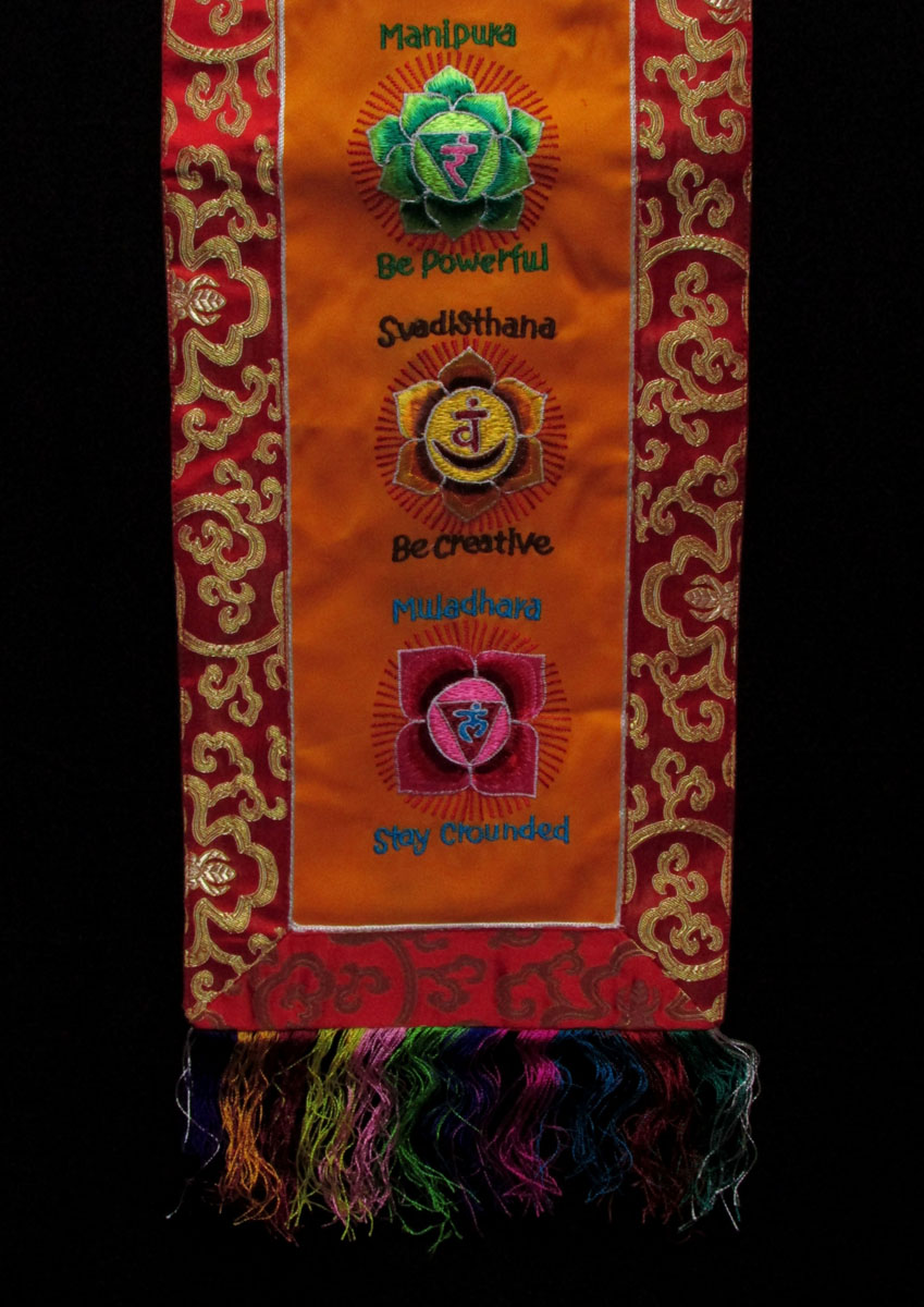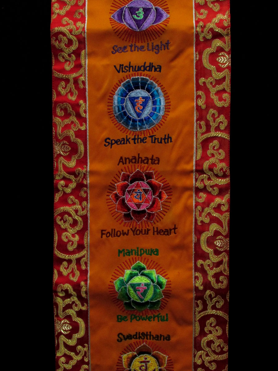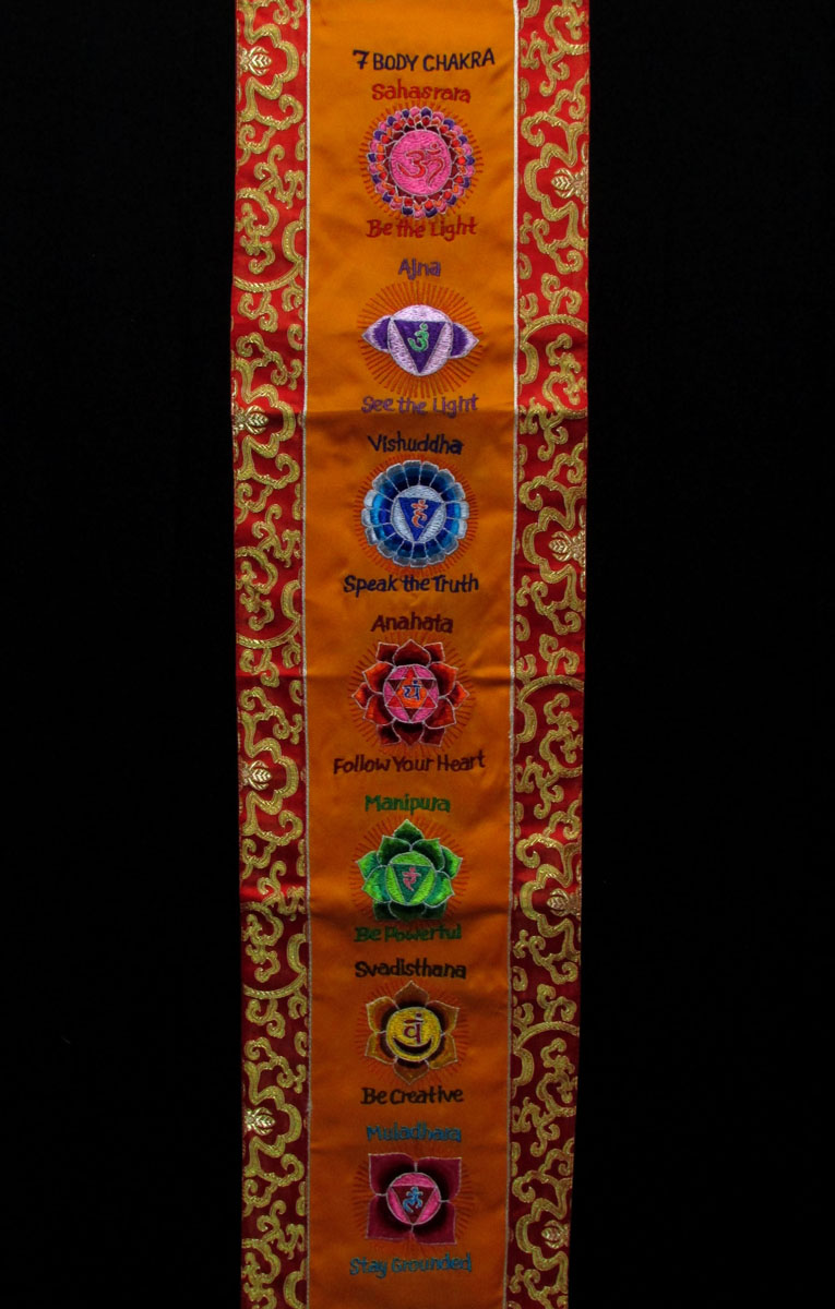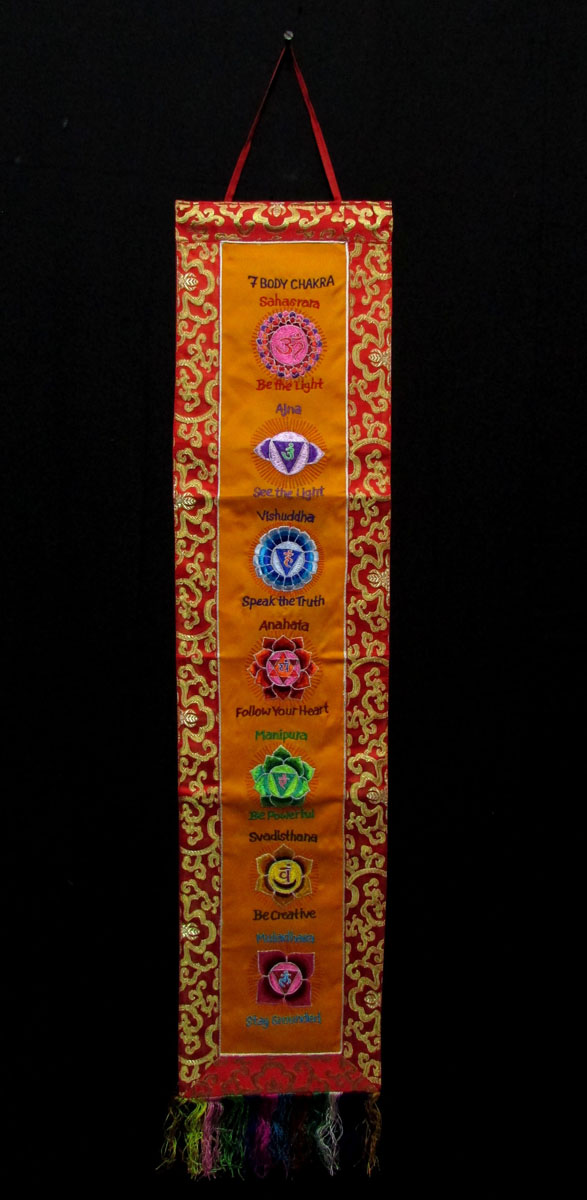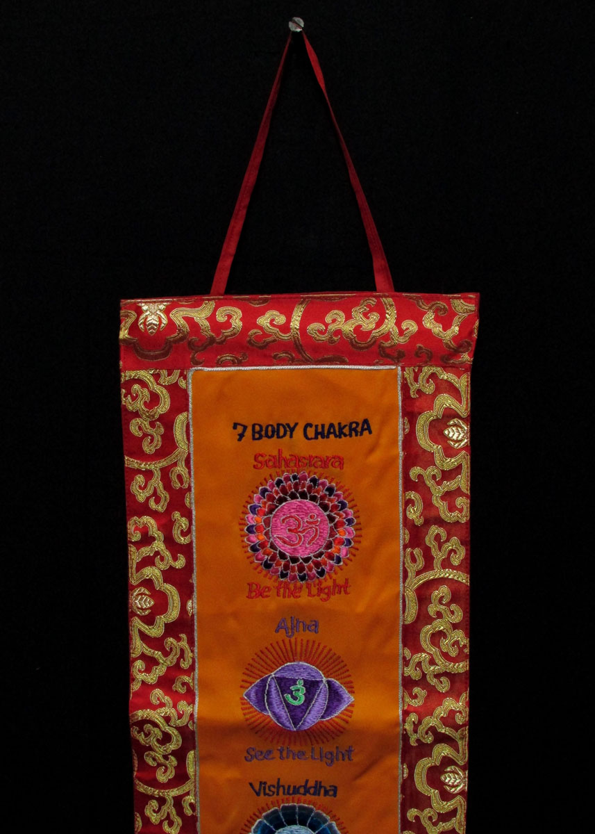 This is a beautiful silk brocade wall hanging from Nepal. At the center 7 Chakras image is embroidered, there is a high quality brocade border. They are handmade by the highly skilled and experienced local artisans in Nepal.
