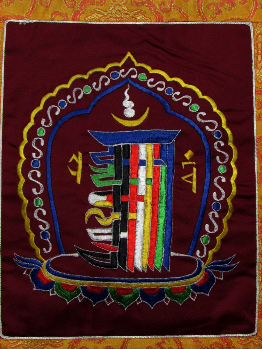 This is a beautiful silk brocade wall hanging from Nepal. At the center beautiful image of Kalachakra is embroidered and there is high quality brocade border. They are handmade by the highly skilled and experienced local artisans in Nepal.