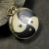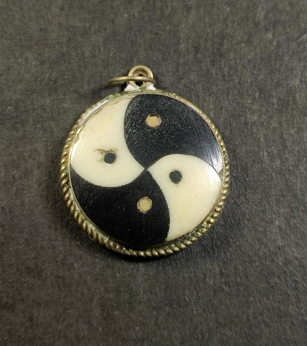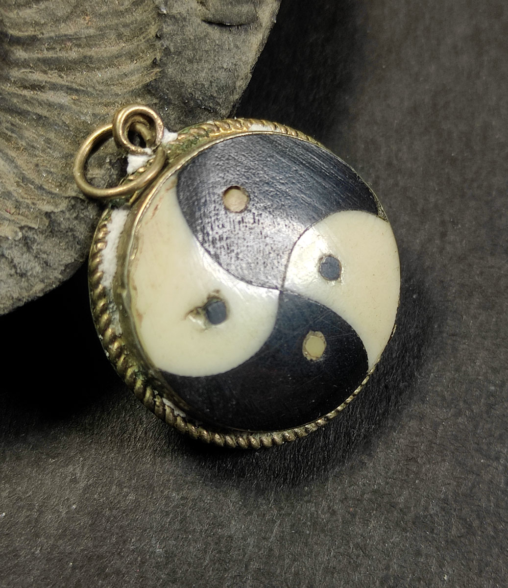 This is a gorgeous Buddhist amulet, all handmade by the artisans of Patan Nepal. The white part of the pendant is the bovine bone and the black part is Horn.