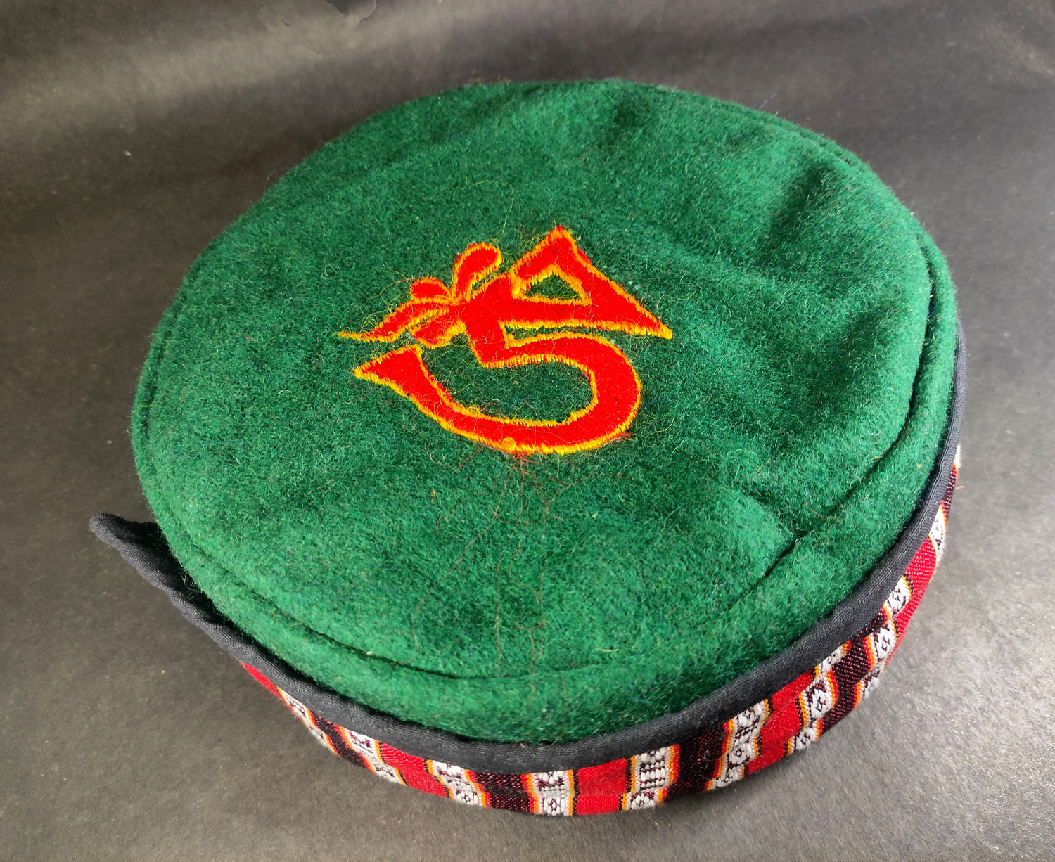 The traditional Sherpa cap from Nepal is a iconic and warm accessory worn by the Sherpa people, who are indigenous to the Himalayan region. The cap is made from wool or yak hair, and is designed to keep the wearer's head and ears warm in the cold climate of the high mountains. The cap typically features a rounded shape with a pom-pom on top, and is often adorned with colorful tassels or embroidery. The Sherpa cap is not only a functional piece of clothing, but also a symbol of cultural heritage and identity for the Sherpa people, who are known for their expertise in mountaineering and their ability to thrive in the harsh conditions of the Himalayas.