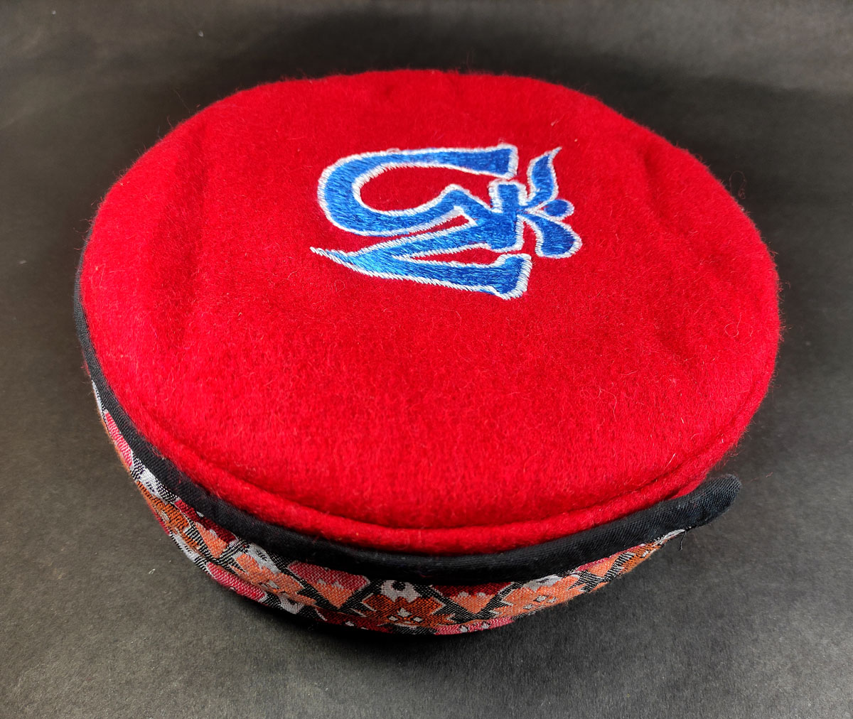 The traditional Sherpa cap from Nepal is a iconic and warm accessory worn by the Sherpa people, who are indigenous to the Himalayan region. The cap is made from wool or yak hair, and is designed to keep the wearer's head and ears warm in the cold climate of the high mountains. The cap typically features a rounded shape with a pom-pom on top, and is often adorned with colorful tassels or embroidery. The Sherpa cap is not only a functional piece of clothing, but also a symbol of cultural heritage and identity for the Sherpa people, who are known for their expertise in mountaineering and their ability to thrive in the harsh conditions of the Himalayas.