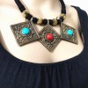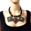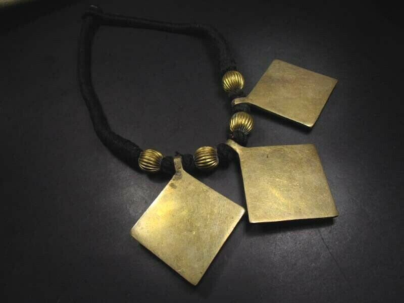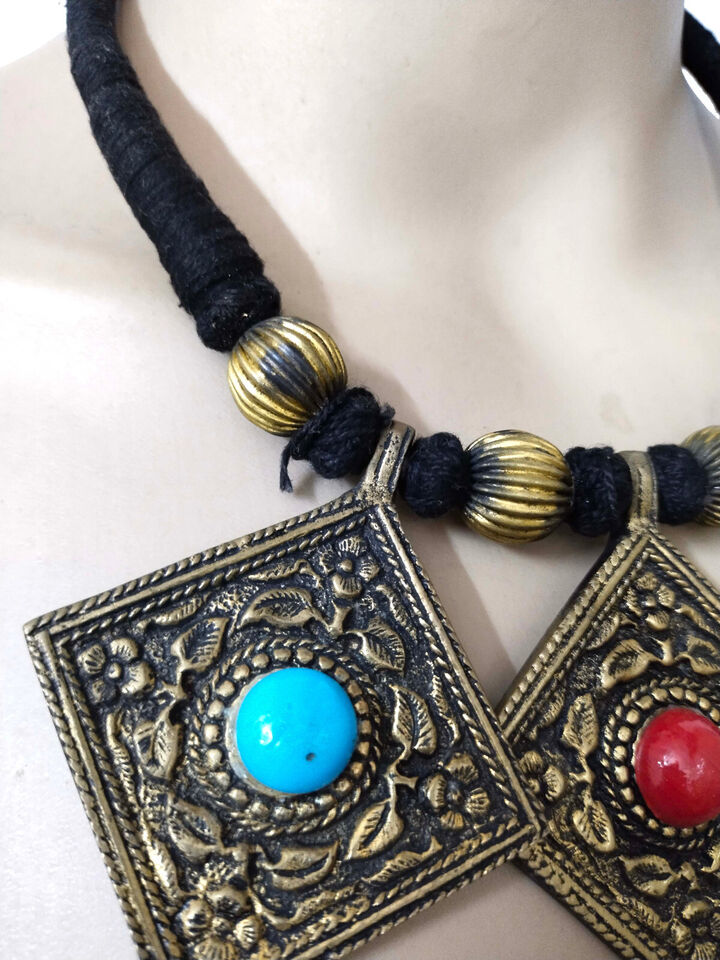 This is a beautiful handmade solid antiqued Solid brass bib tribal ethnic Necklace from Nepal. The closer has a bone piece.