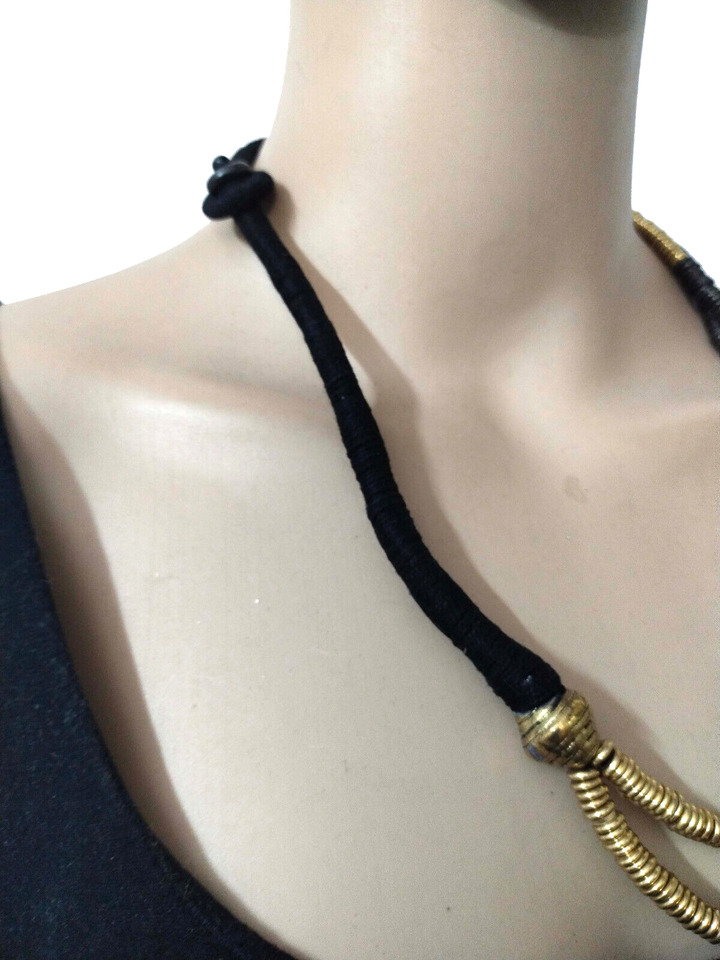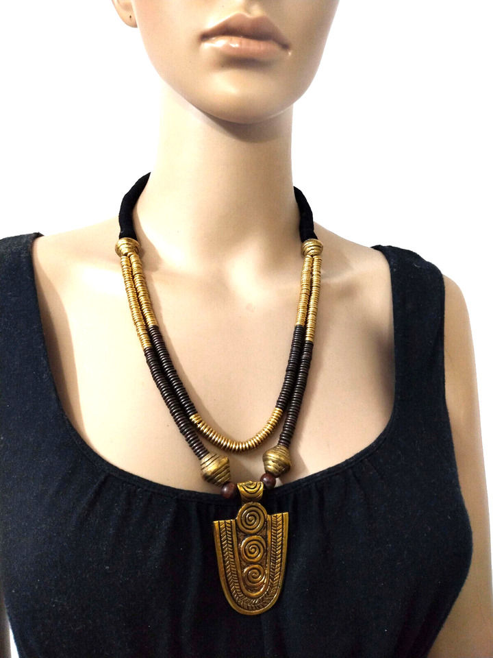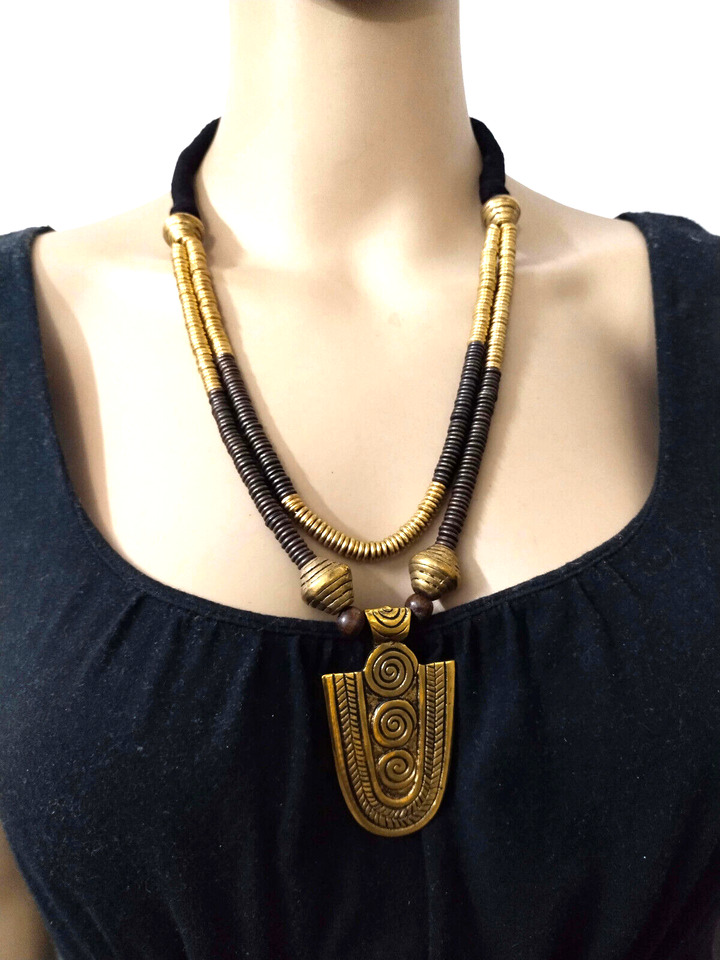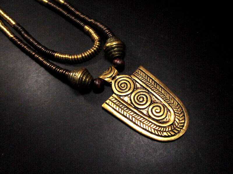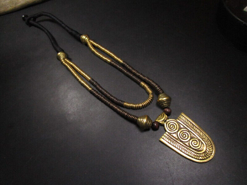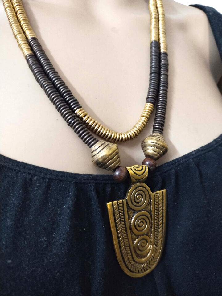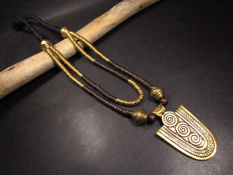 This is a beautiful handmade solid brass ring spiral tribal ethnic pendant necklace from Nepal. The closer has a bone piece. Very unique got to have necklace for party, ramp or for daily use.