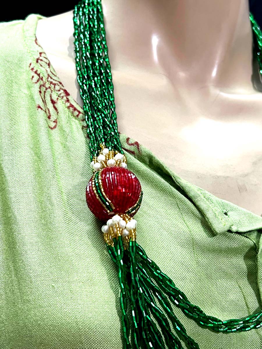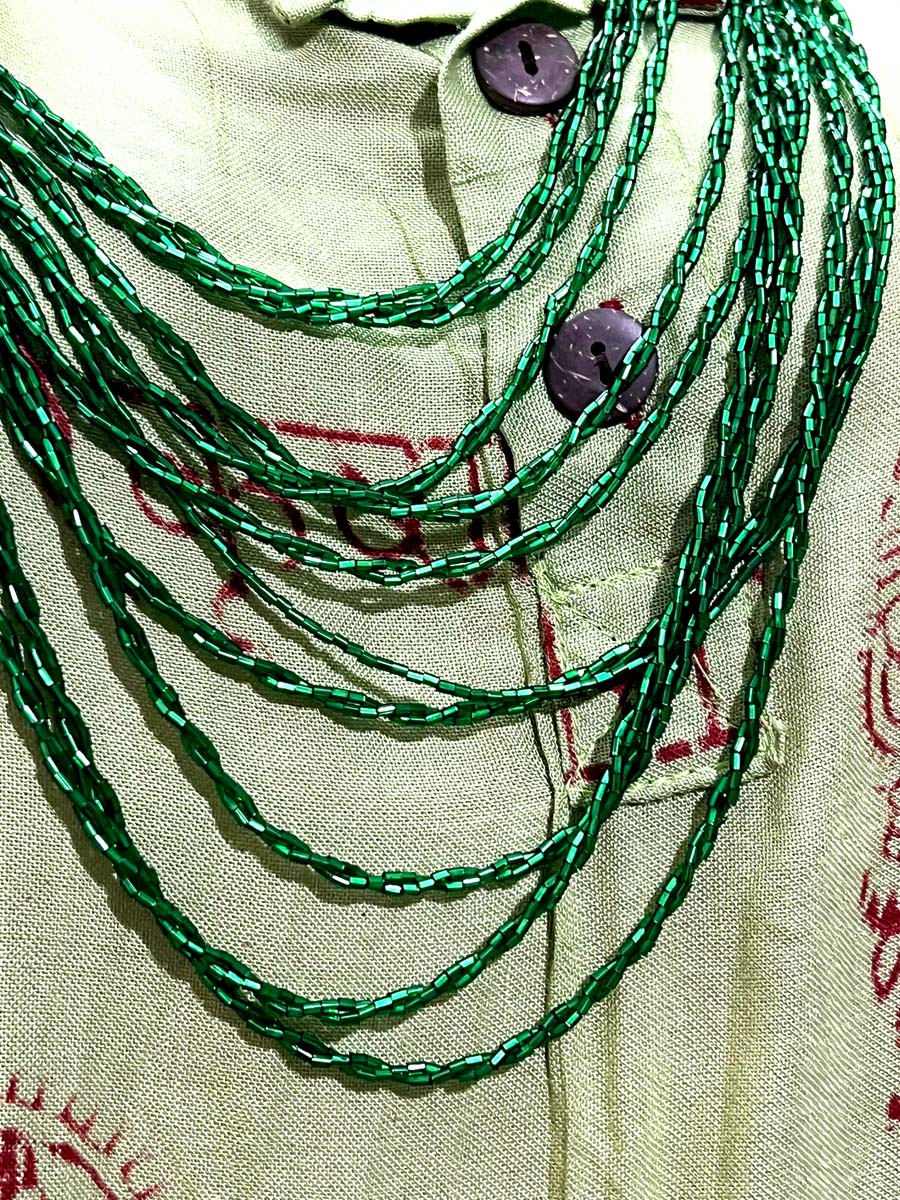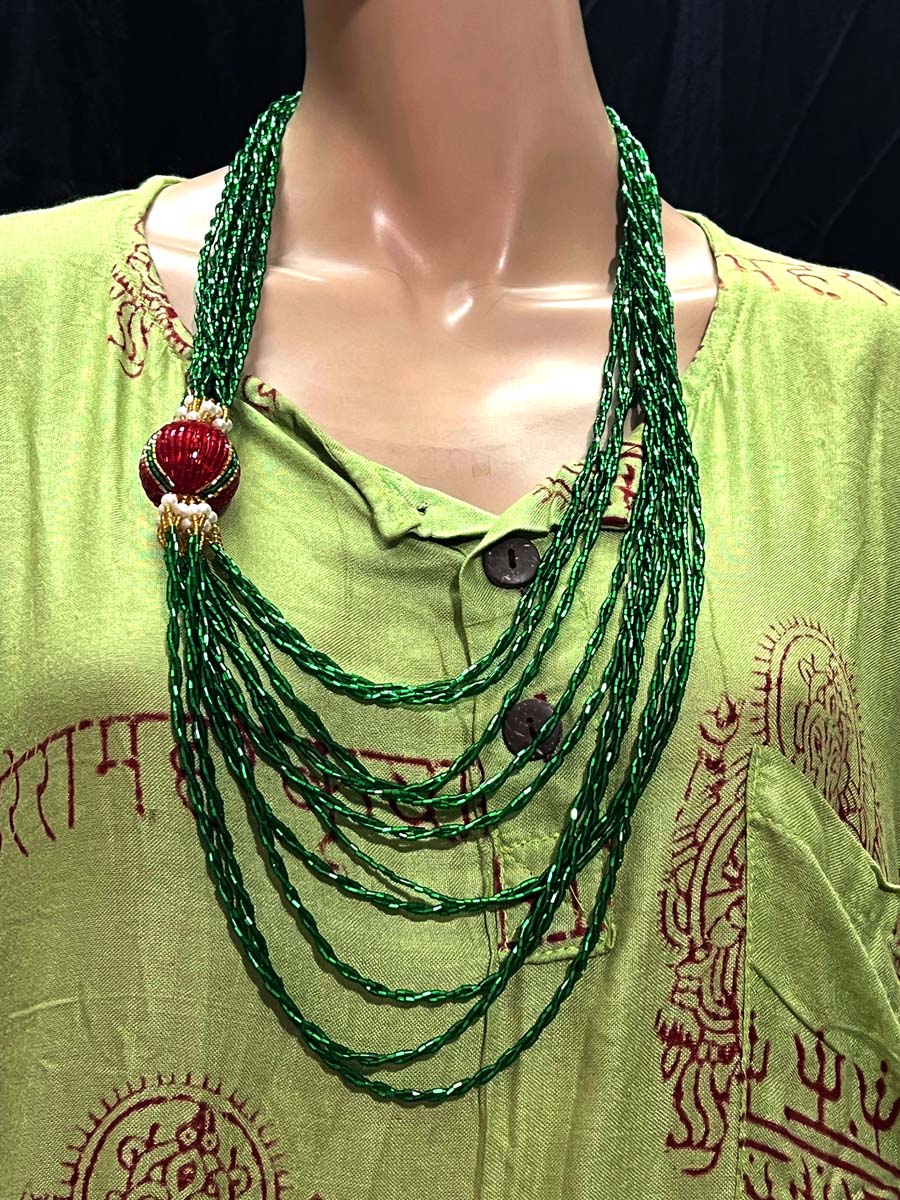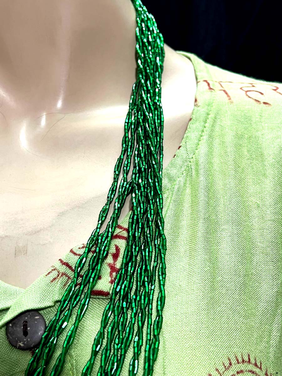 - Tribal Ethnic Green Glass Pote Bead Gypsy Style Handmade wedding Necklace Nepal - Nnp113