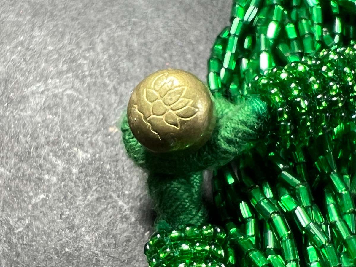 Clasp: Lotus-carved brass ball clasp for secure closure