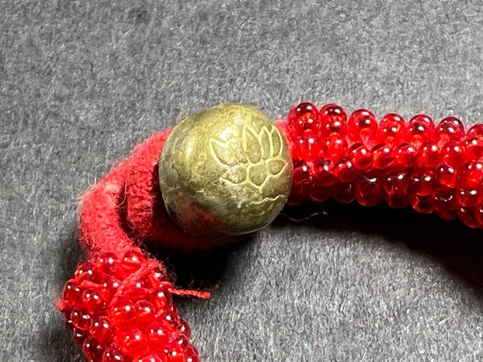 Clasp: Lotus-carved brass ball clasp for secure closure