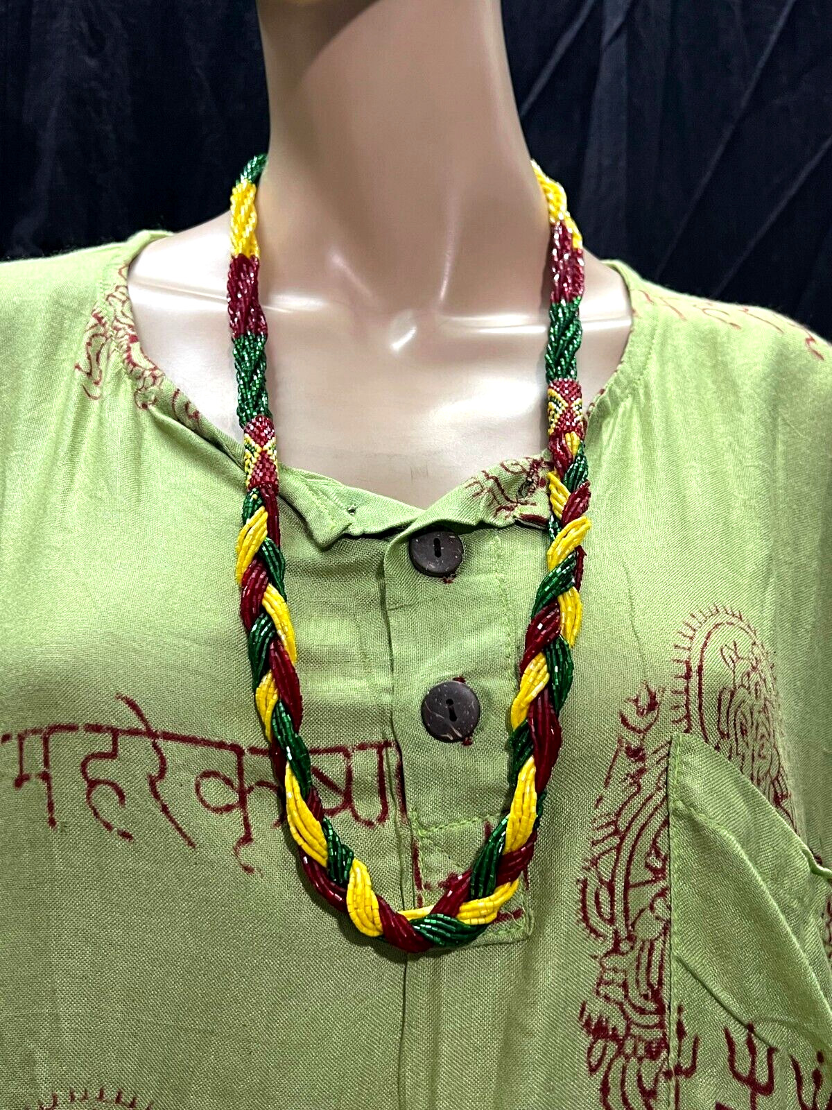 Celebrate tradition with this beautiful Nepali Pote Mala Necklace, meticulously handcrafted with vibrant glass beads. A stunning piece that combines color, culture, and craftsmanship, making it a perfect accessory for weddings, festivals, or special occasions. The necklace features a unique lotus-carved brass ball clasp for an elegant finish, adding a touch of artistic flair.