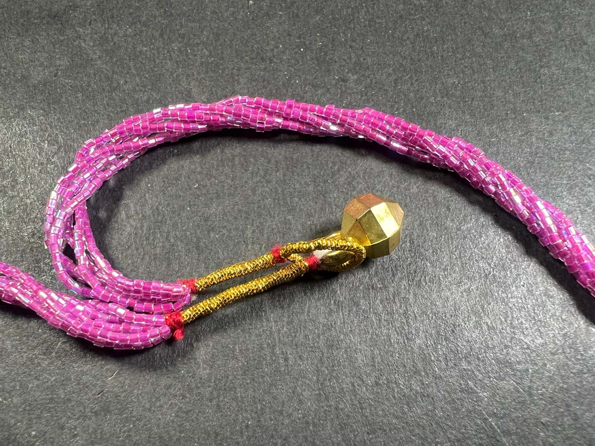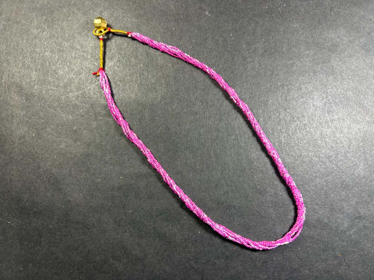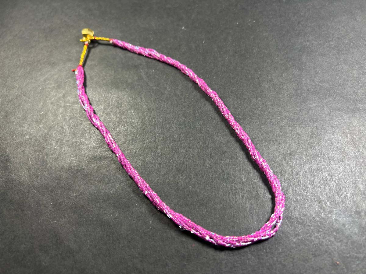 Usually made of tiny glass beads, the common color is green, but other colors like red and yellow are also seen.