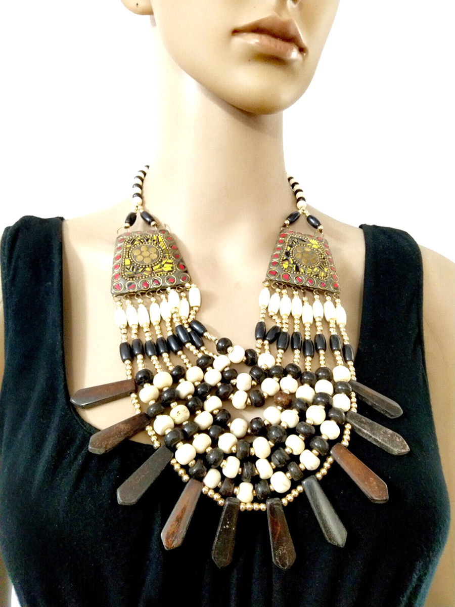 This is a beautiful ethnic 7 multi color strand bovine bone, resin beads necklace (Brand new) from India.