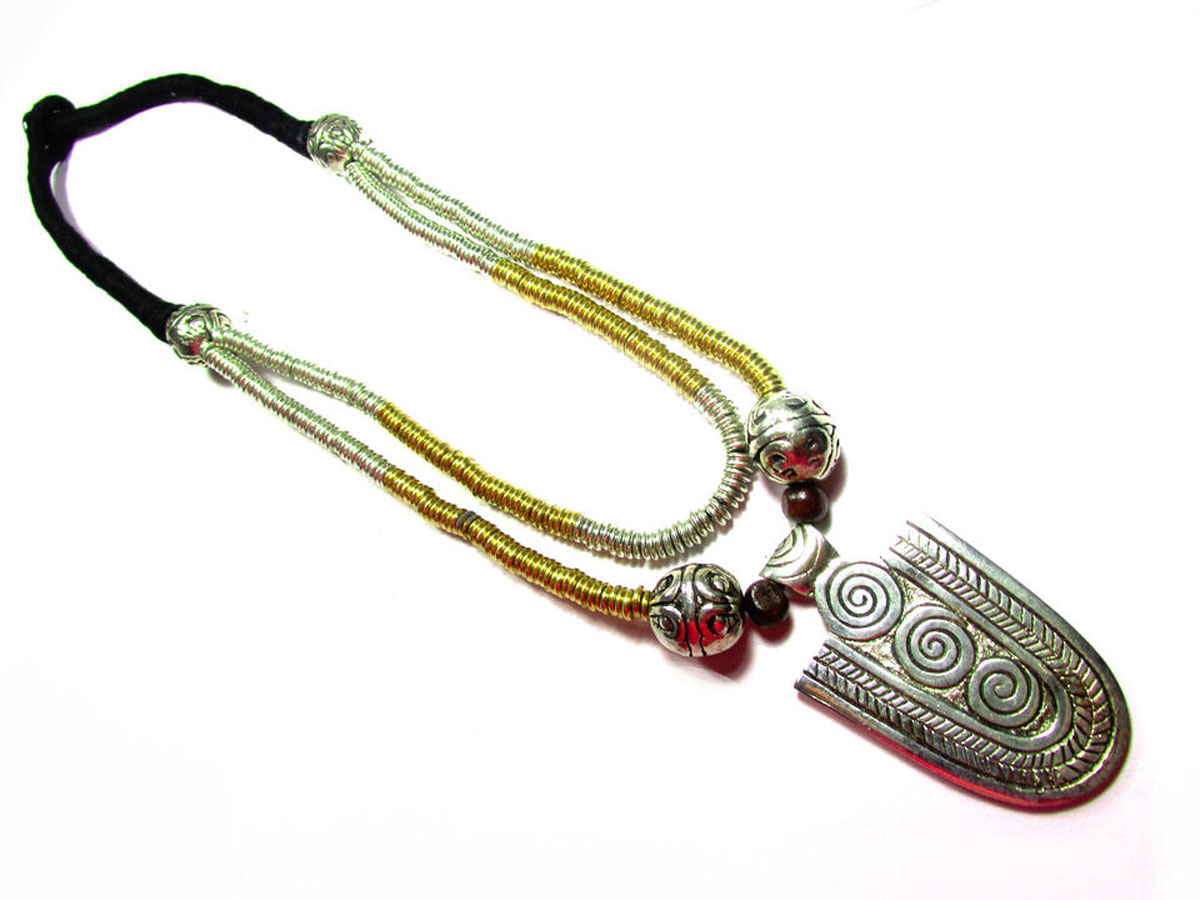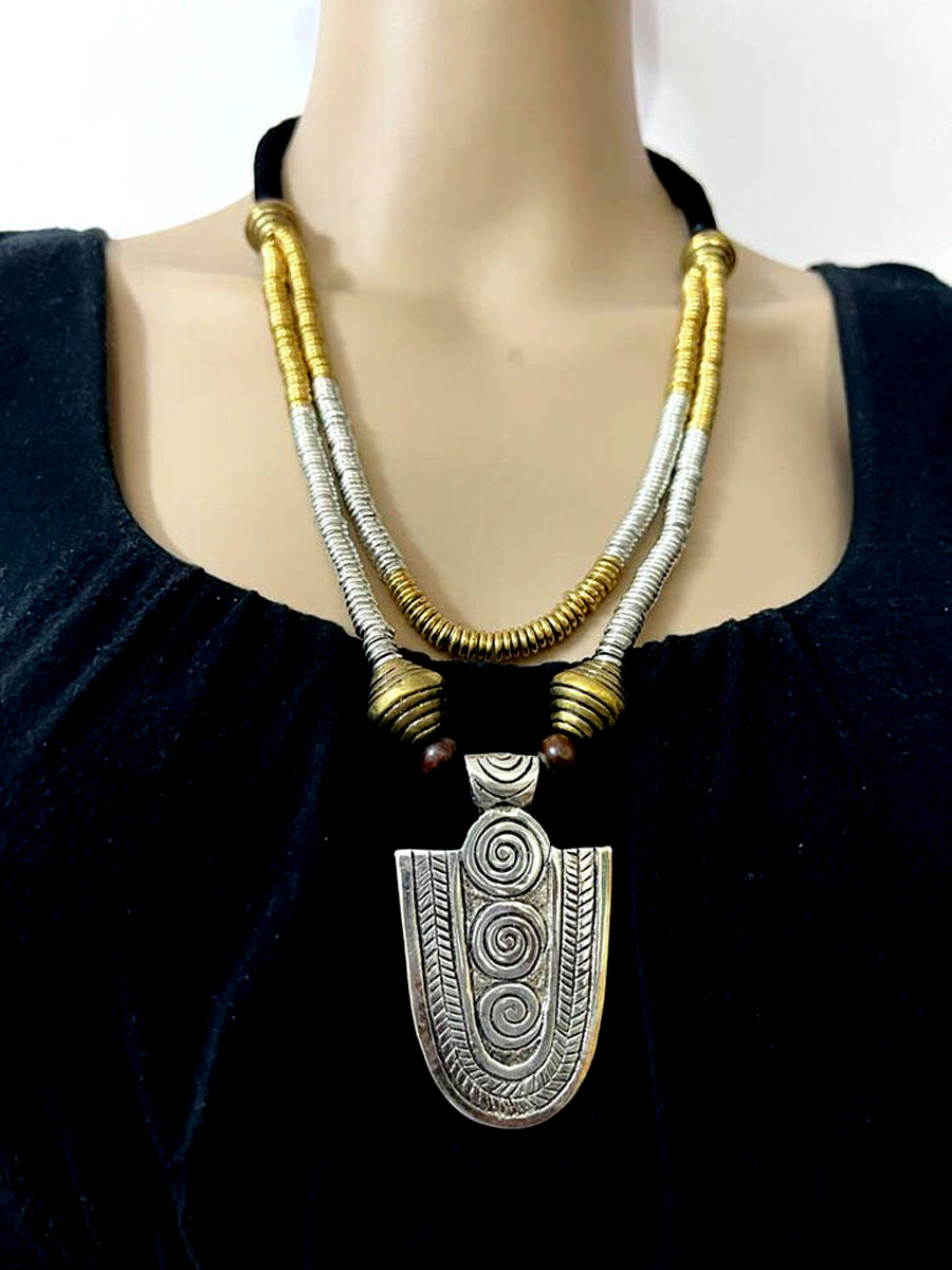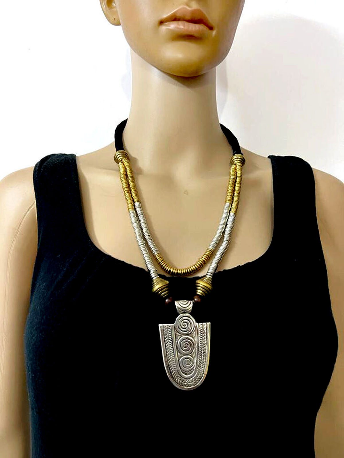 This necklace can be styled as a striking ethnic tribal accessory or worn casually for a bold statement.