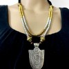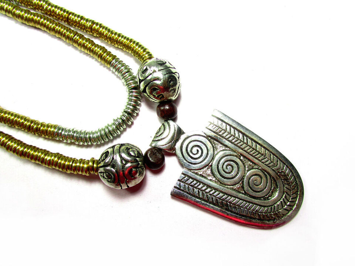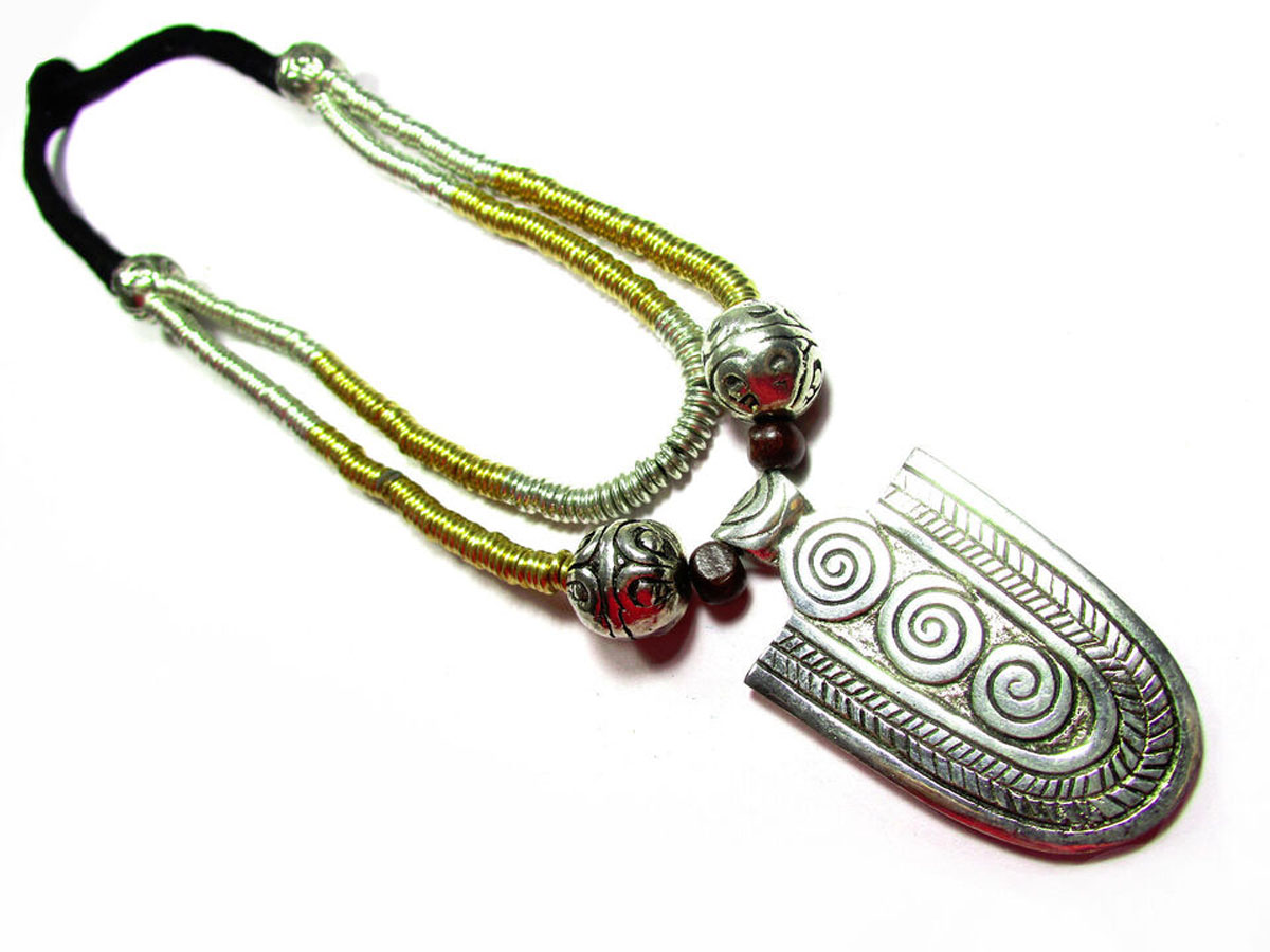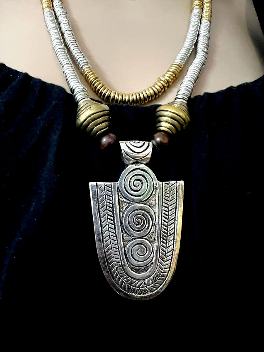 This necklace can be styled as a striking ethnic tribal accessory or worn casually for a bold statement.