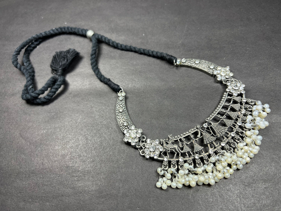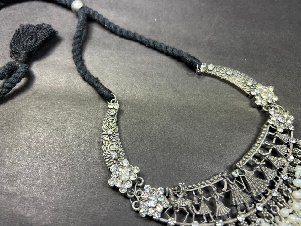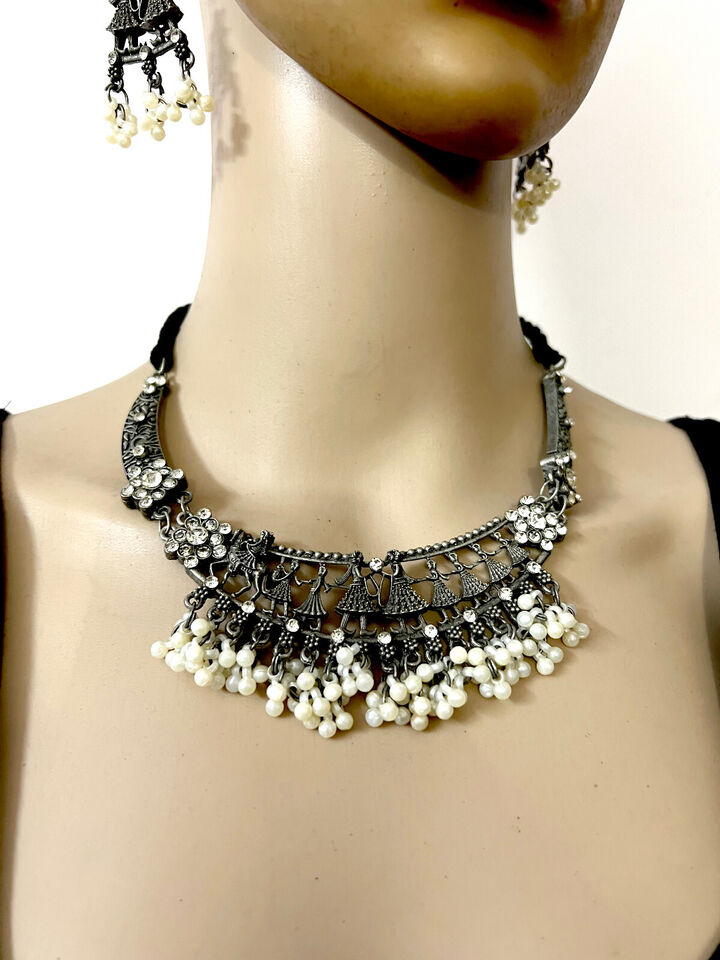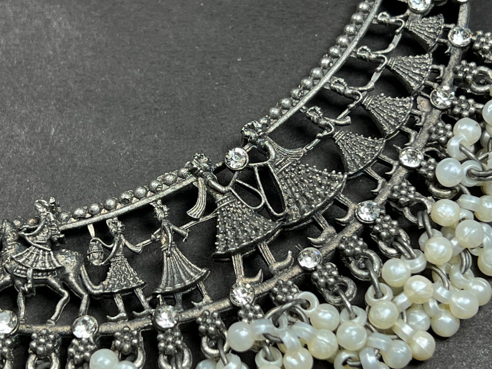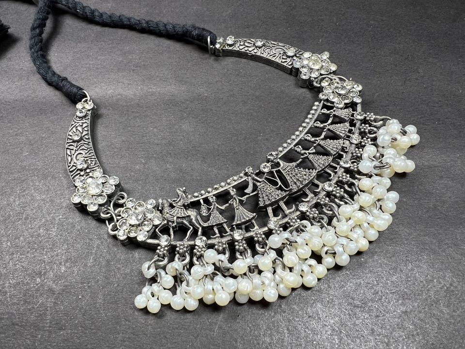 This is an ethnic, vintage, handcrafted, oxidized choker style Antiqued Tone Necklace from India (Brand New).