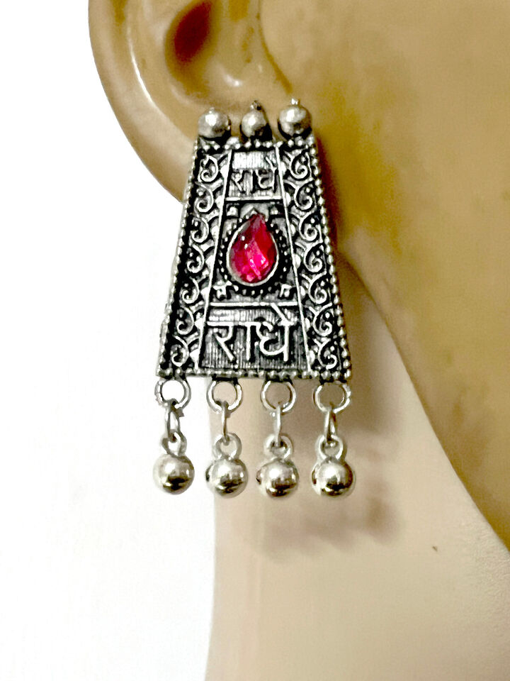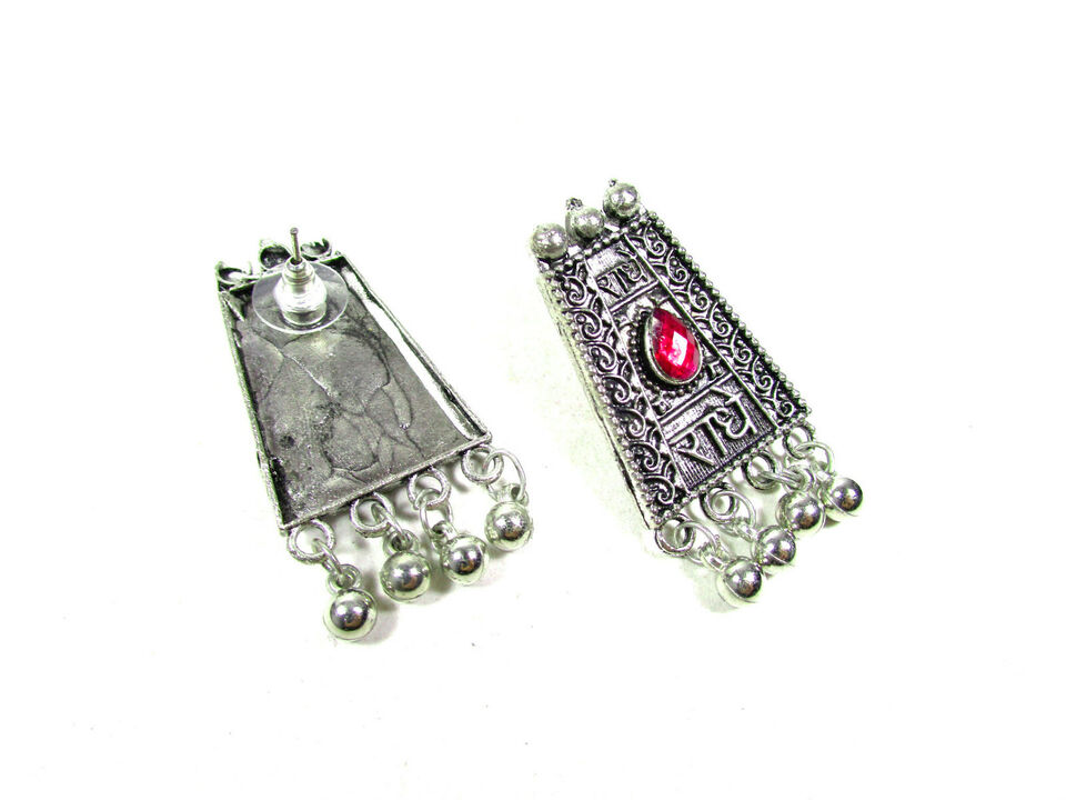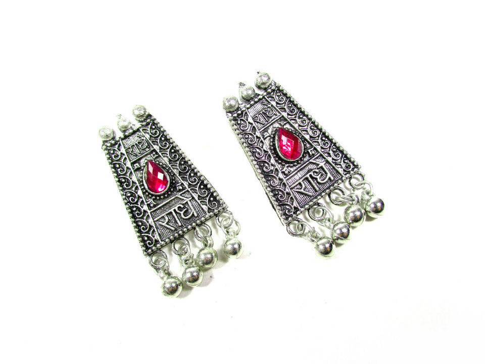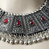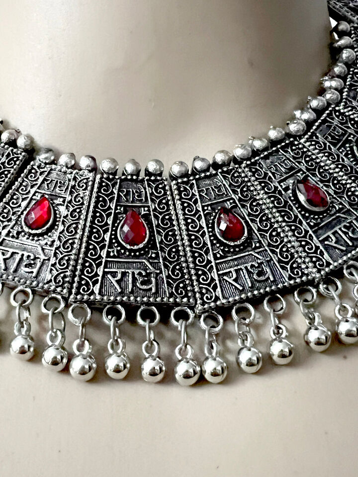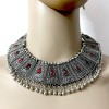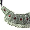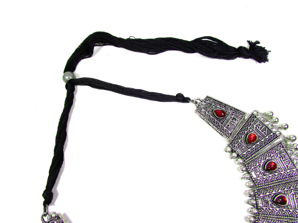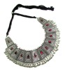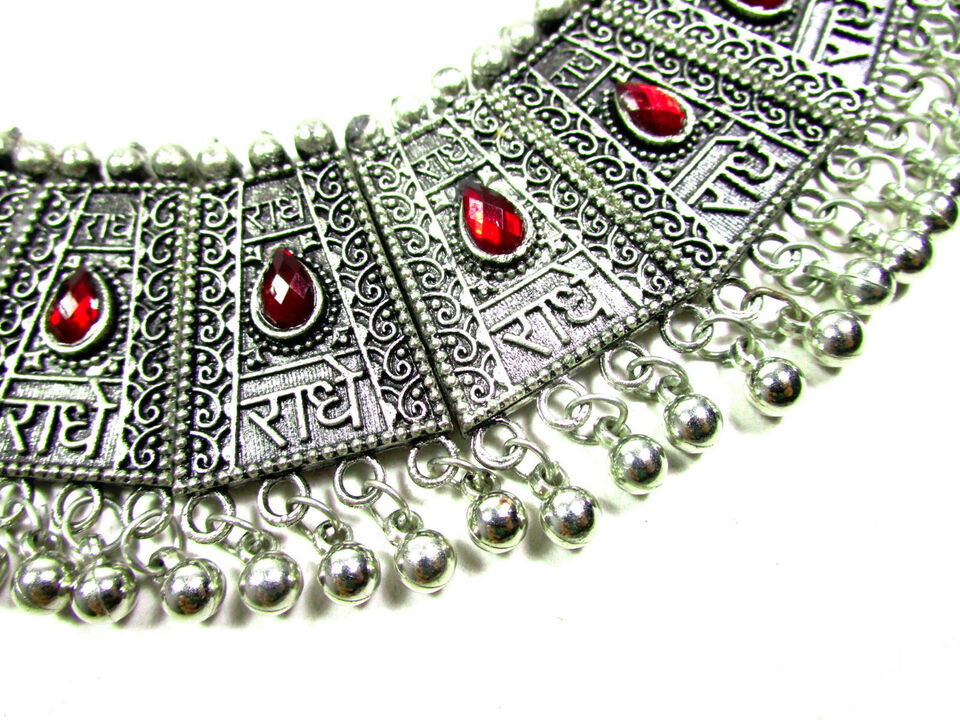 This is a gorgeous ethnic tribal Banjara design choker/statement style with real bells Antiqued Tone Necklace set earrings from India.