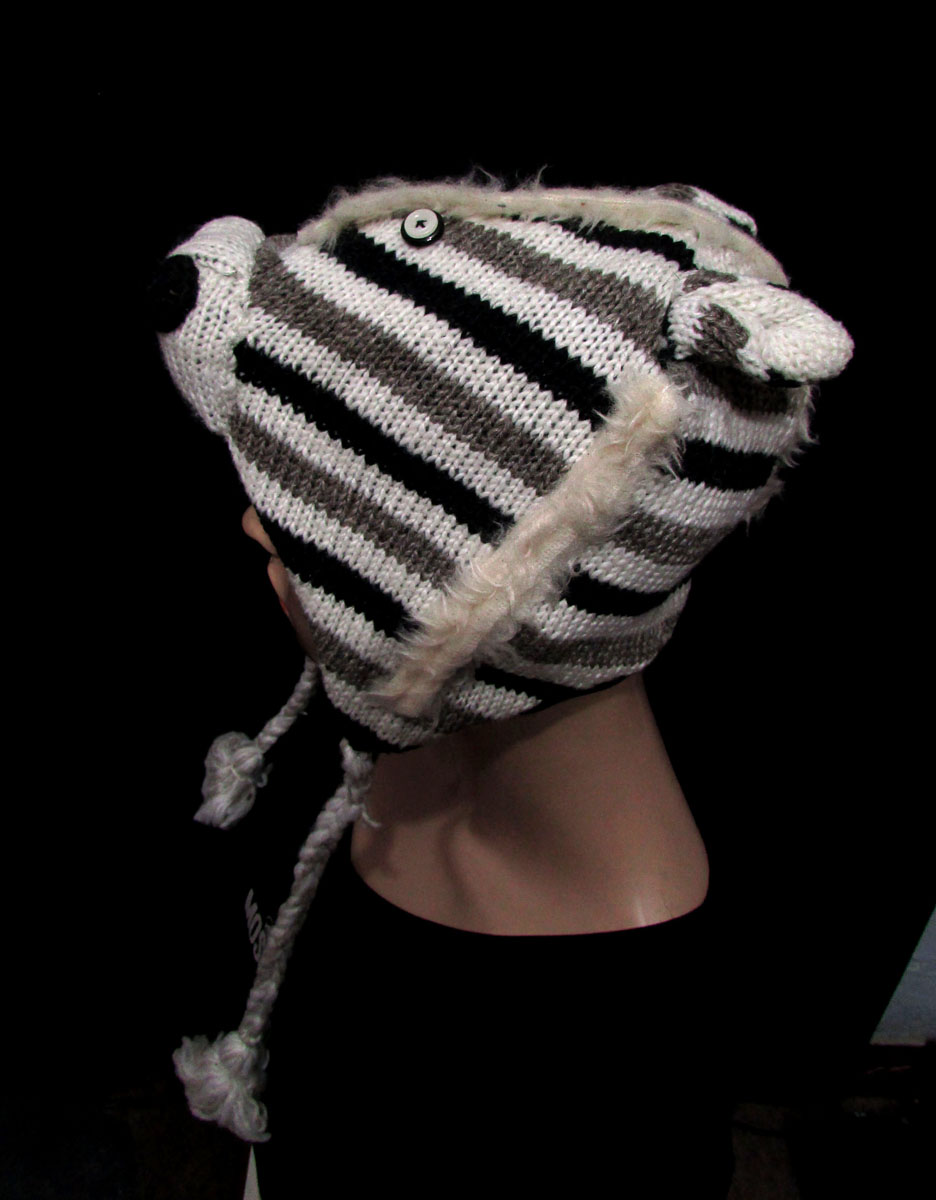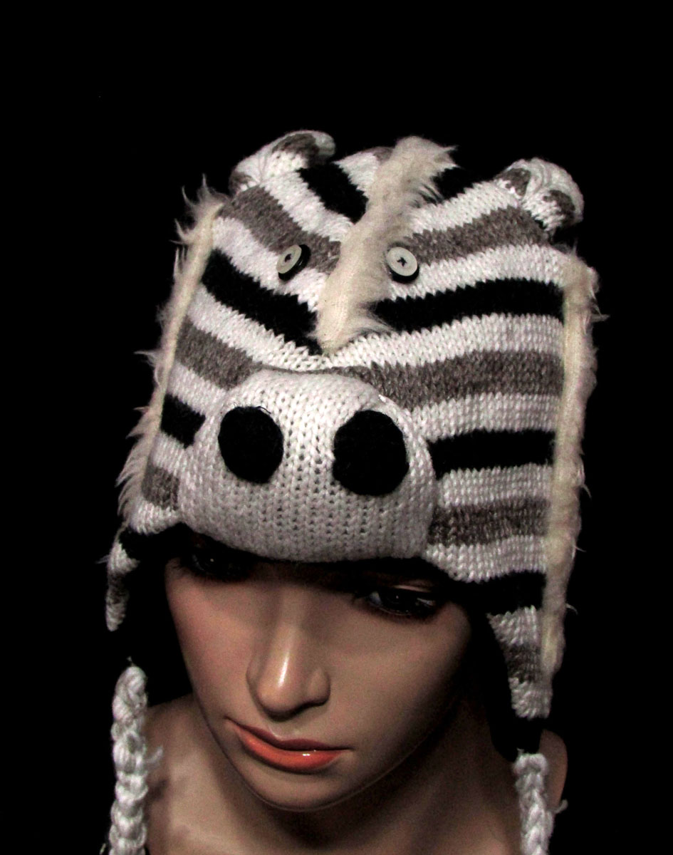 A zebra hand-knitted sheep wool cap from Nepal is a one-of-a-kind piece that combines traditional craftsmanship with a playful and whimsical design. Here are some interesting aspects of this item: