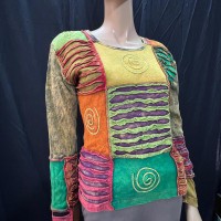 Size M Cotton Hippie Patched Hoodie full zip boho women Rasta Jacket Nepal-J31