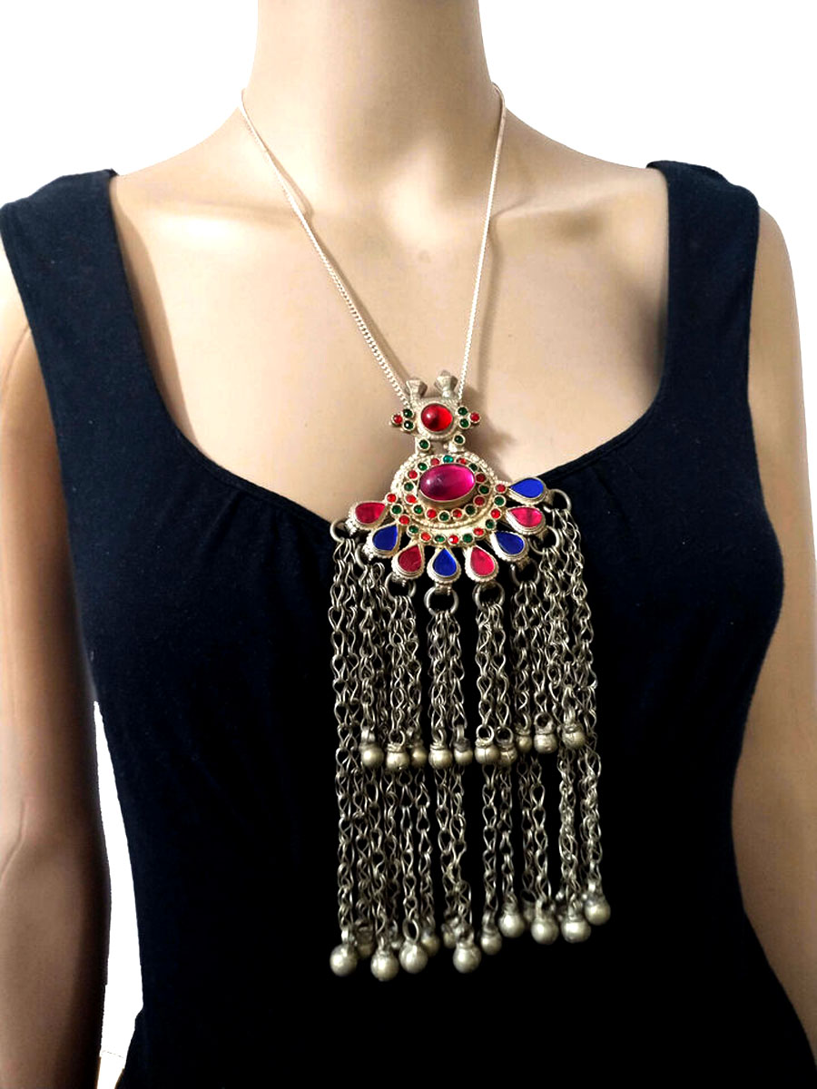 4. Tassel necklace: A long necklace featuring tassels made from beads, threads, or yarn.