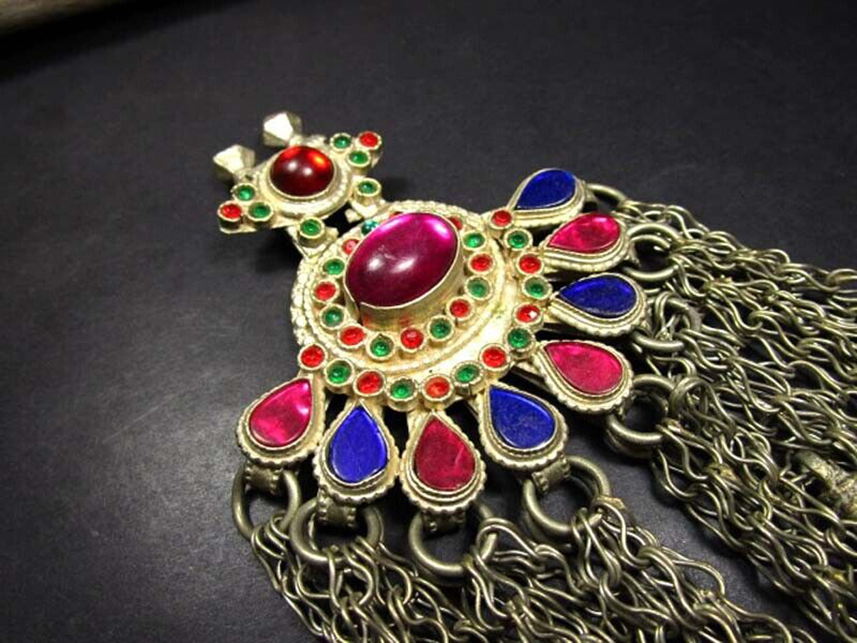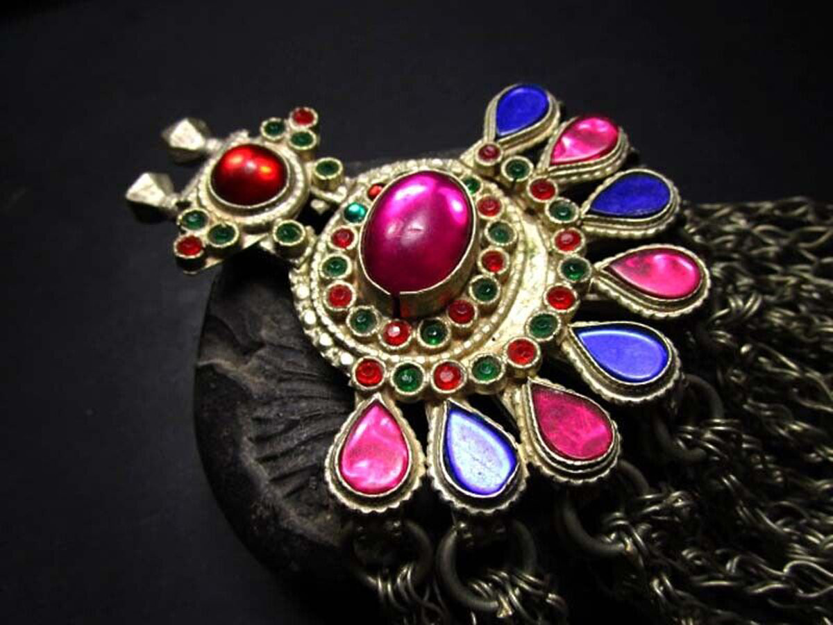 1. Colorful stones: Banjara jewelry is famous for its bold and vibrant use of stones like turquoise, carnelian, coral, lapis lazuli, and red lac. These stones are often paired with intricate metalwork to create a stunning contrast.