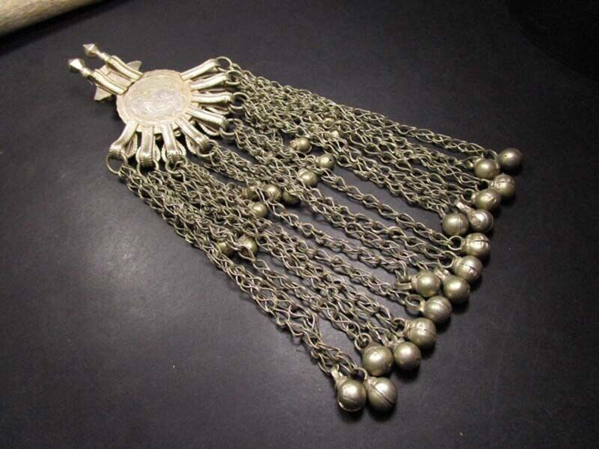 2. Intricate metalwork: Banjara jewelry is characterized by its delicate metalwork, often featuring intricate filigree, etching, and enamel work. The metal used is usually gold or silver, with a reddish hue due to the presence of copper.