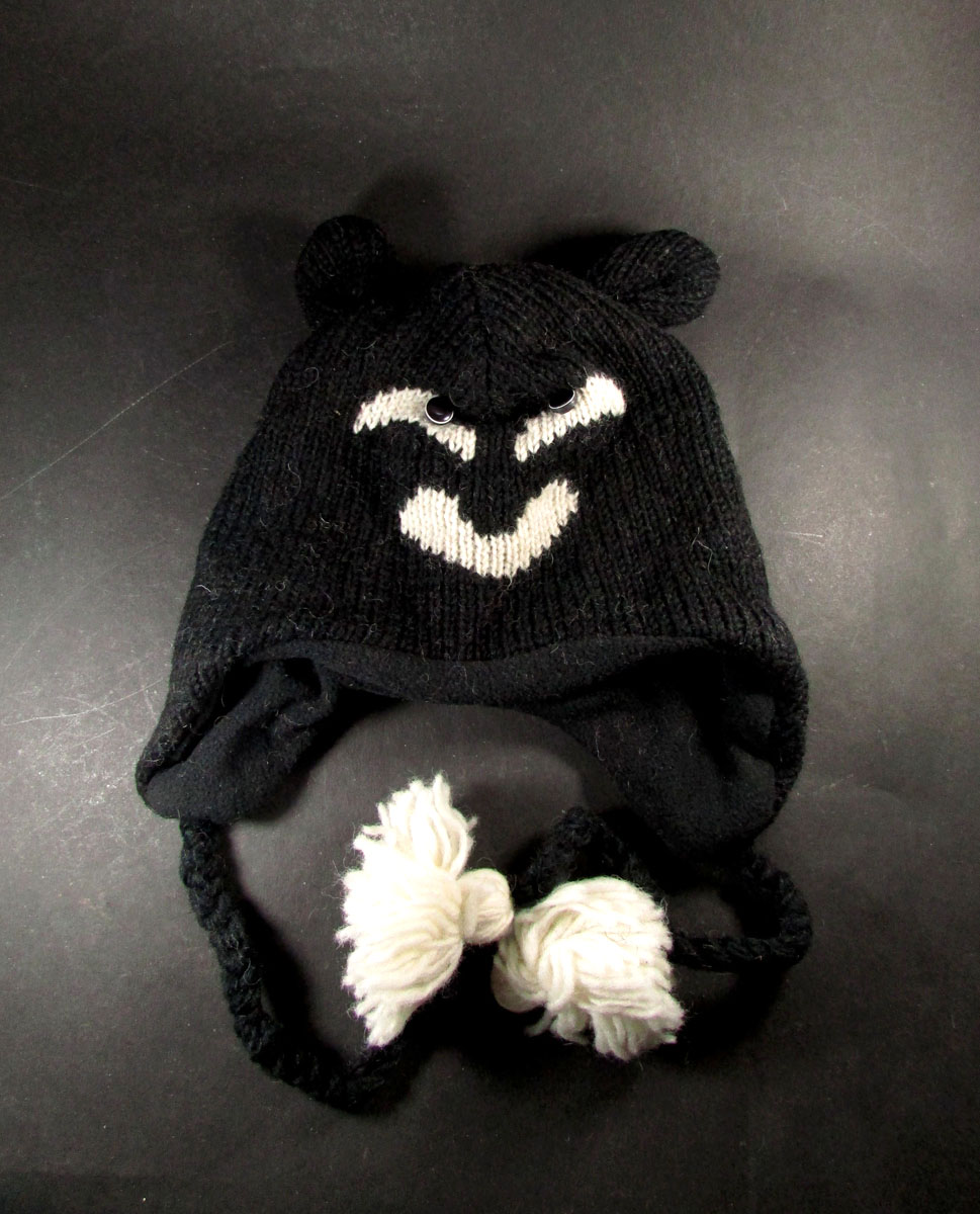 Owl hand knitted black & white sheep wool cap from Nepal
