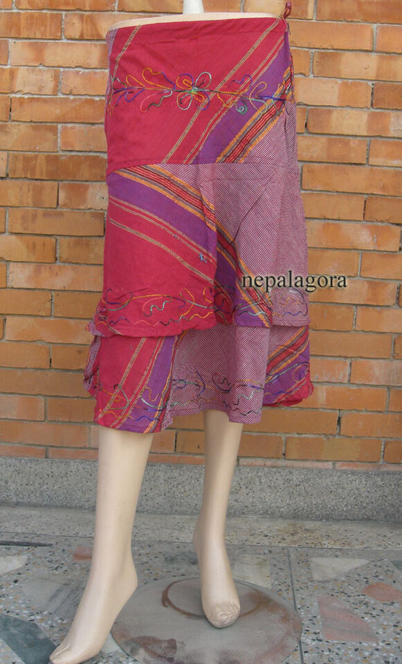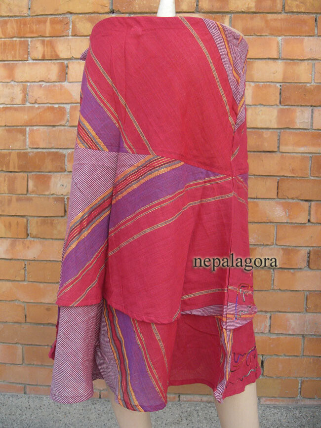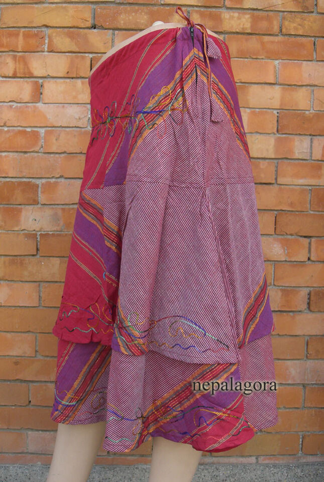 This is a brand new (with tag) gorgeous 100% cotton skirt from Nepal. The skirt has a zip and string to tie in the waist which looks very classic and stylish. We can use it as casual wear in the summer. This skirt should be hand washed separately in cold water.