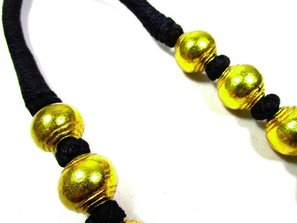The beads are made of brass. It looks very beautiful and Unique. Very Bold, fine and well made.