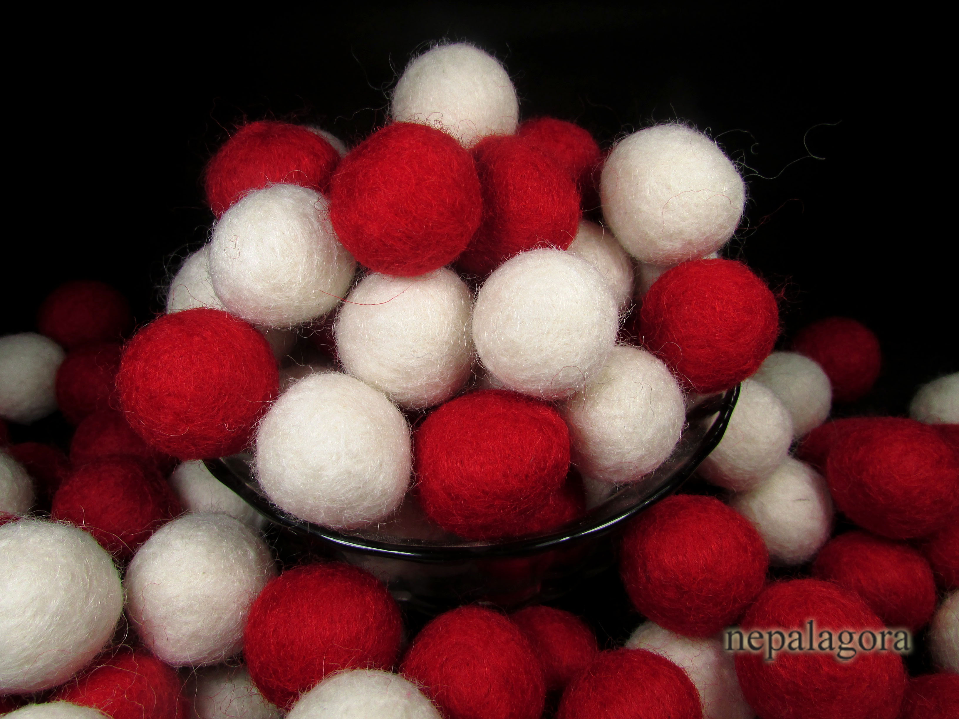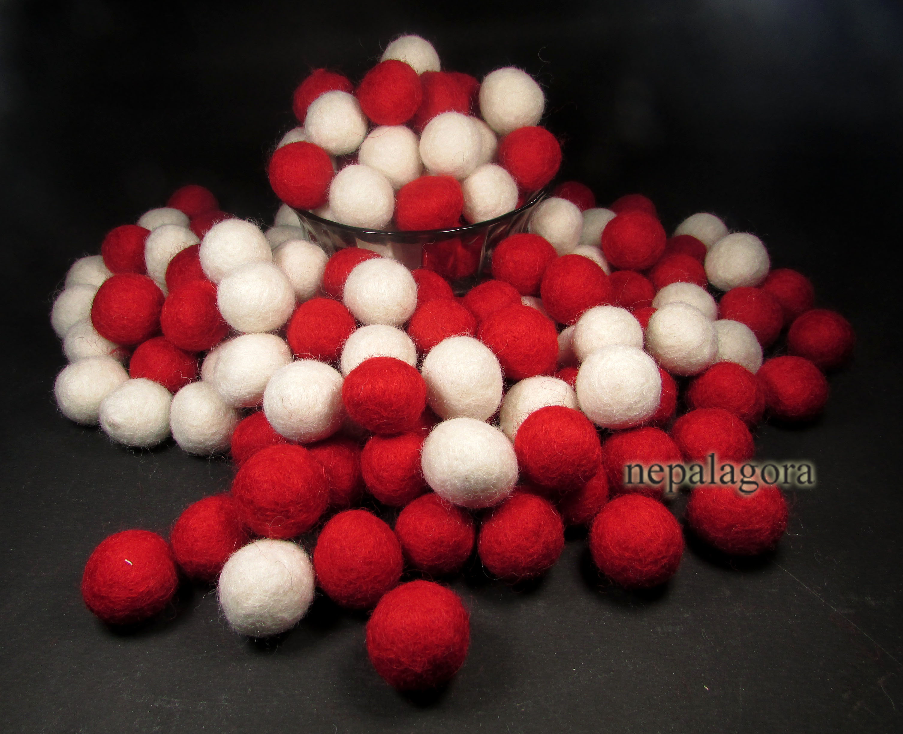 - Decorative Red and White color Felt Pom Pom 2 cm Wool Ball Handmade Christmas Beads Nepal - F118