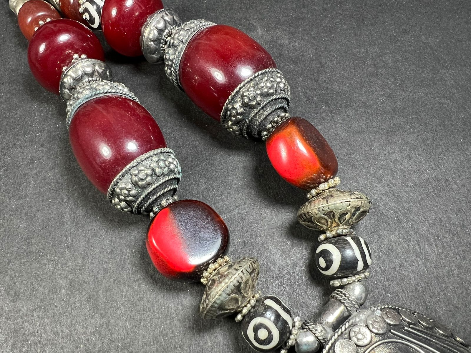 The Cheery amber color resin center piece is about 1.6" Long x 2.1" Wide, Rest beads are about 1.6" x 1", 0.9"x5"