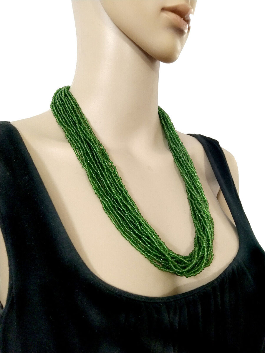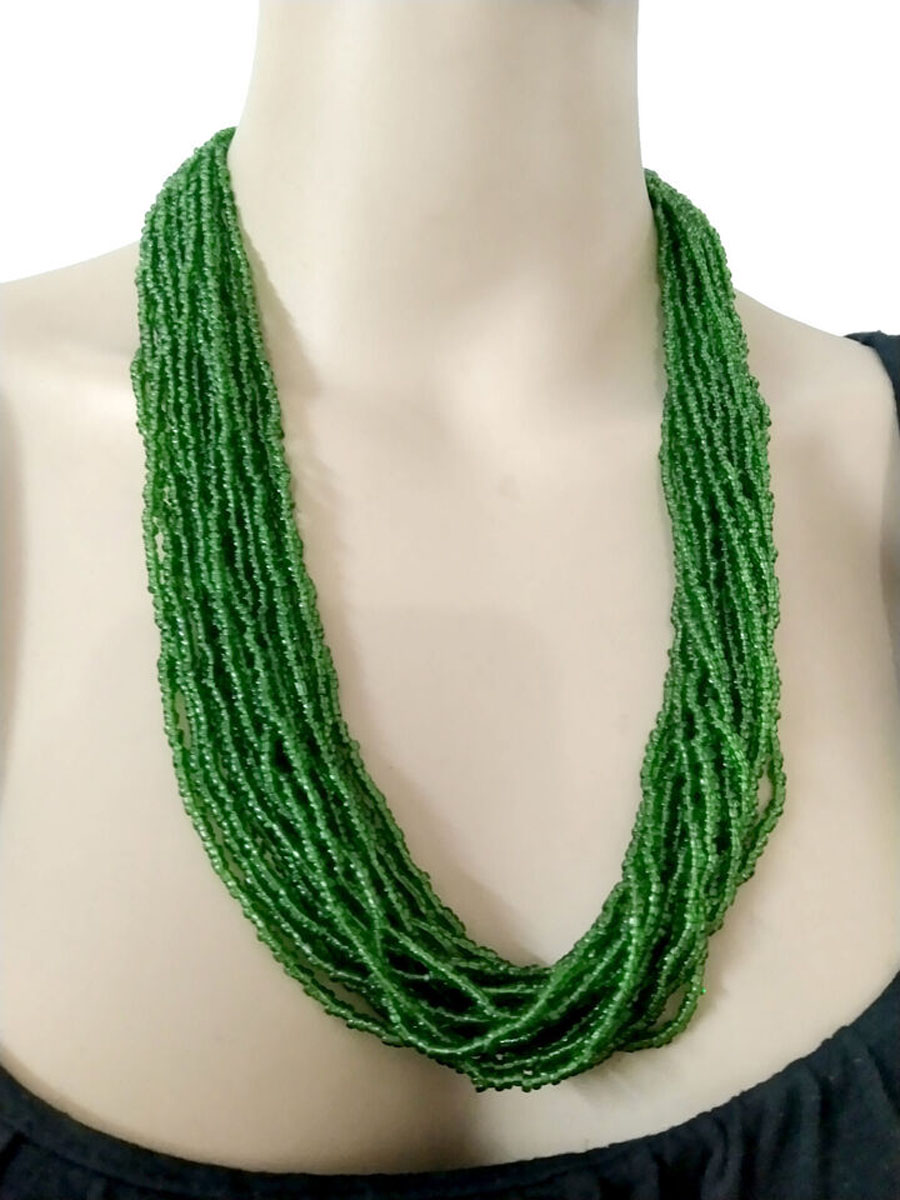 This is a lovely ethnic multi strand glass with cotton cord necklace (Brand new) from Nepal. The beads are made of Glass.