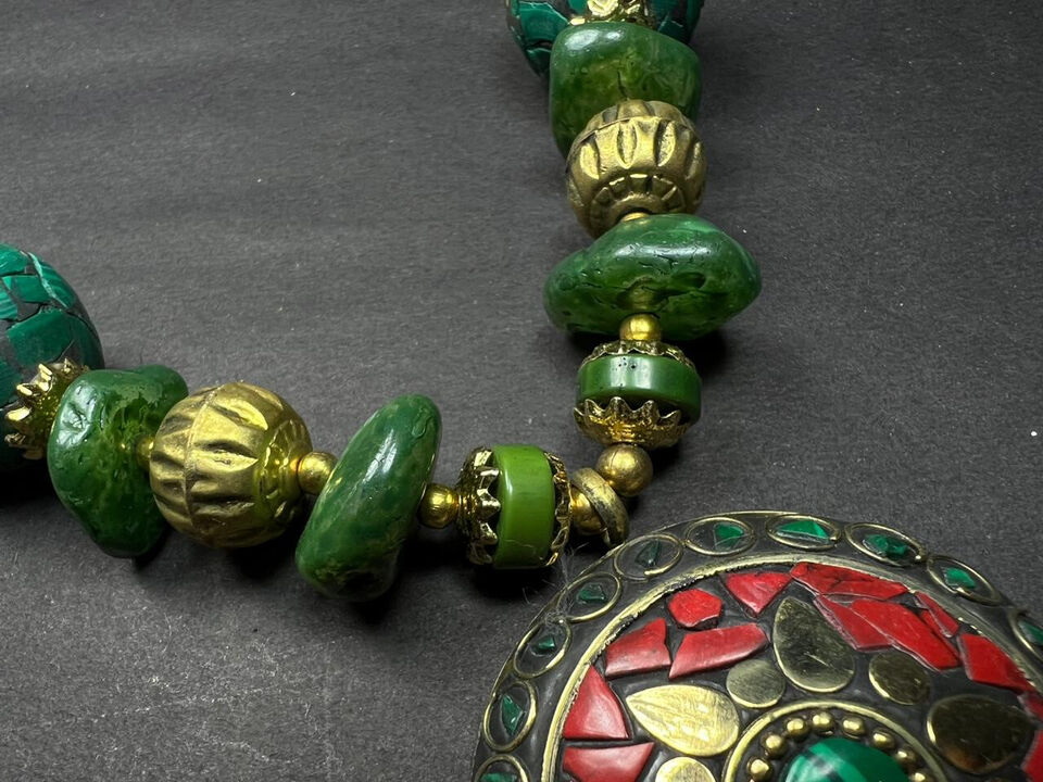 It is an ethnic Tibetan Fashion design Chemical resin beads with mosaic pendant style Necklace from India.