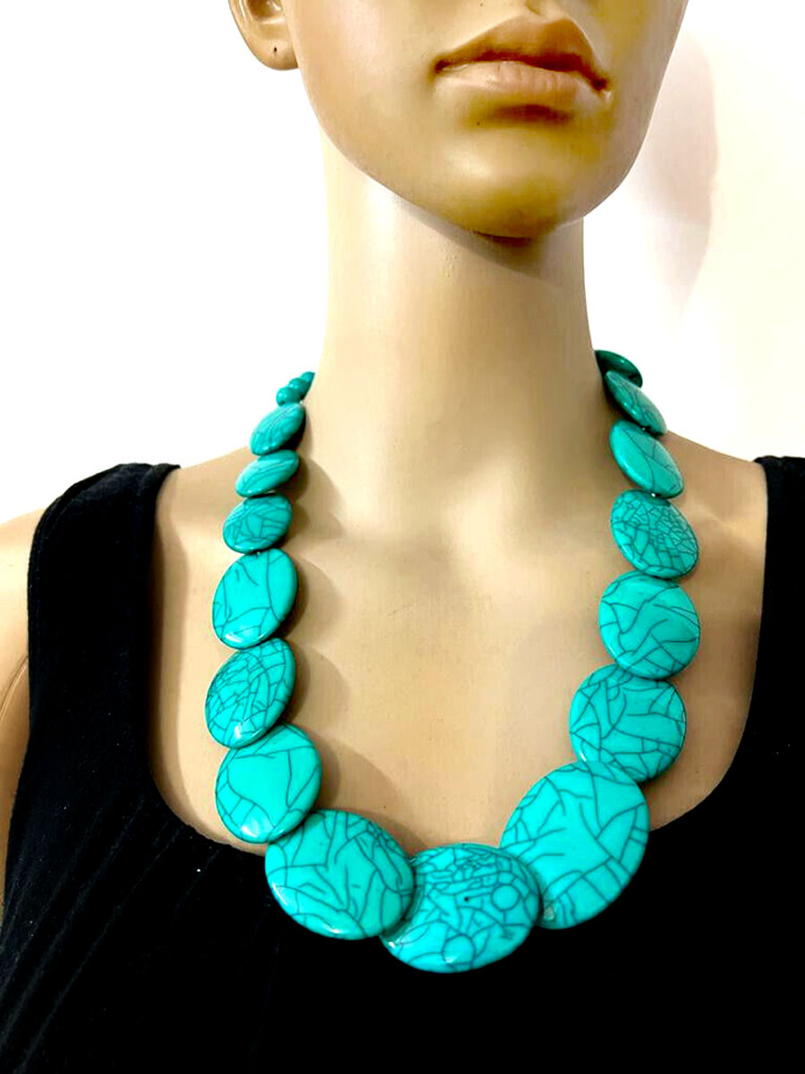 This necklace’s unique design and vibrant colors make it a distinctive accessory, perfect for adding a bold statement to any outfit.