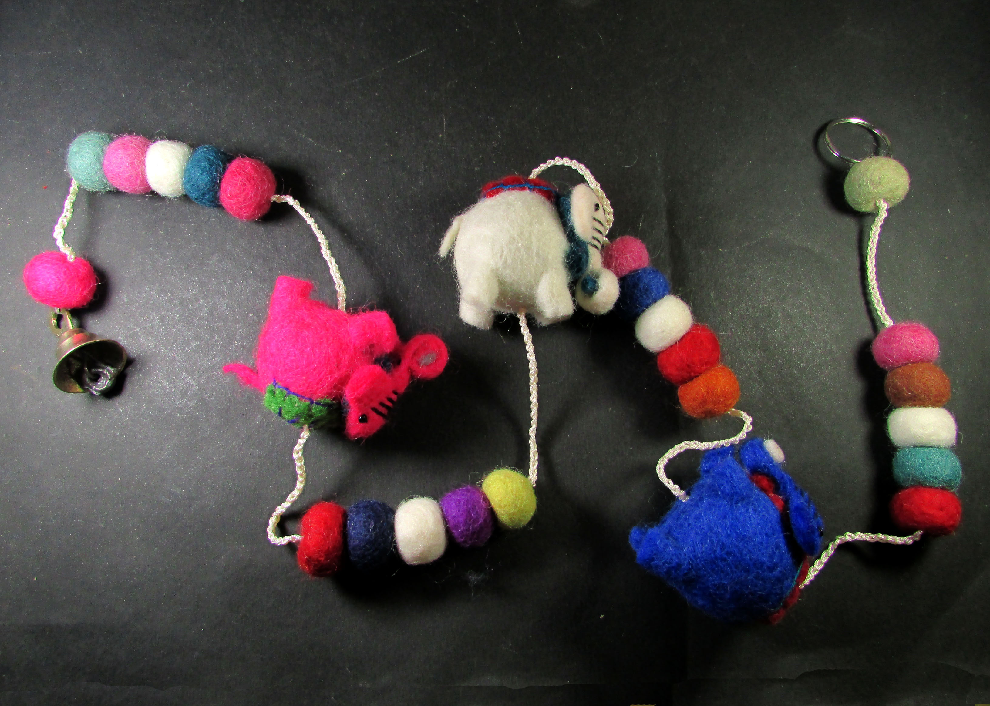 - Handmade Decorative Multi color Felt Pom Pom Wool Ball Wall Door Hanging Garland Nepal - F154