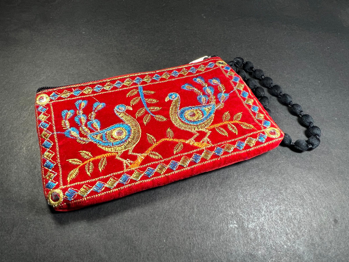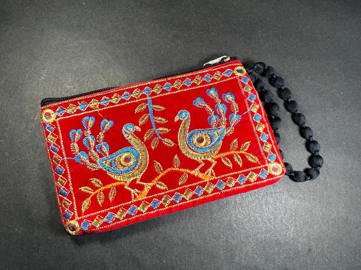 Handmade Peacock Crochet Purse | Velvet Zipper Coin Bag | Boho Gypsy Rajasthan Gift Pouch