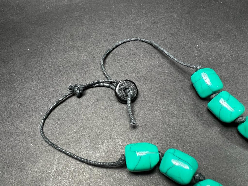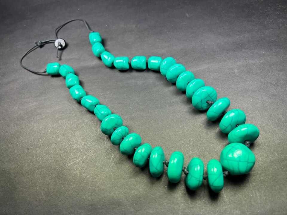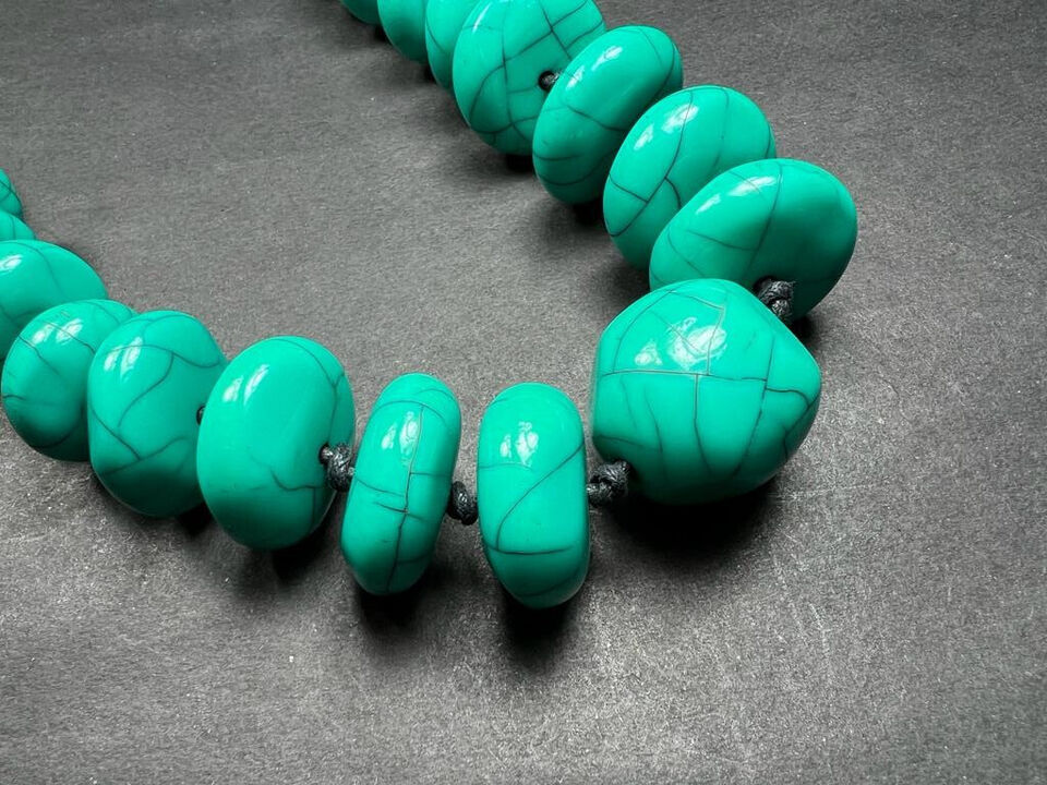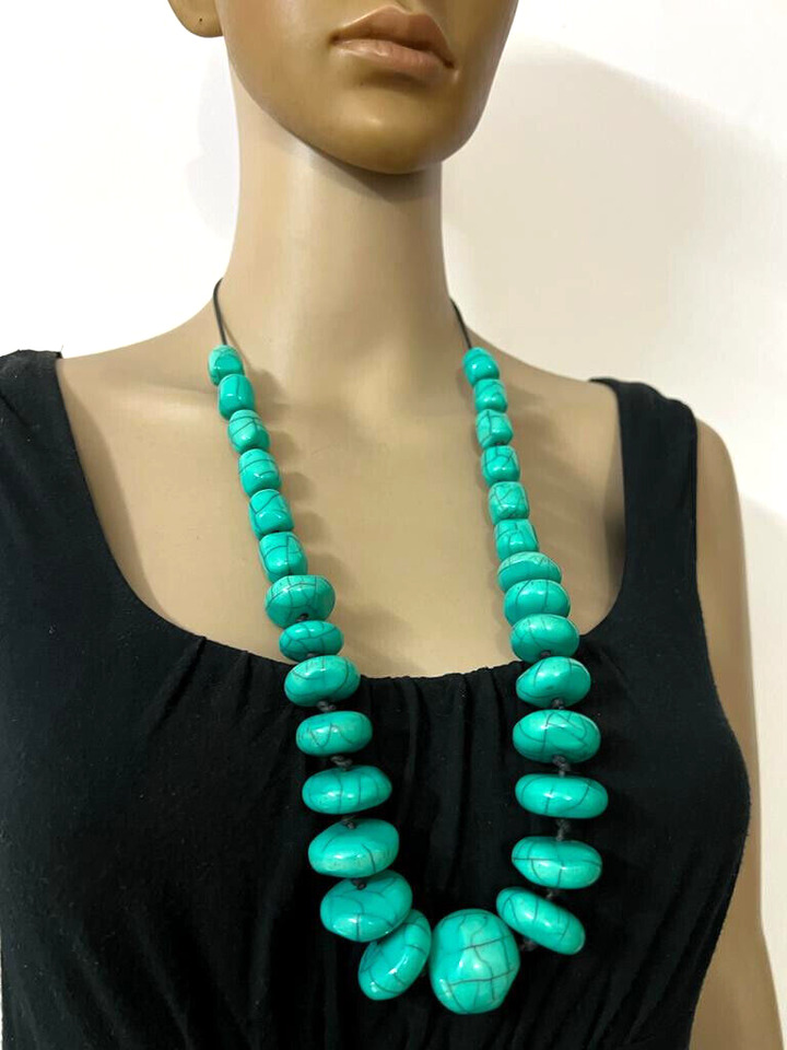 This is a long style Turquoise color resin bold beads necklace (Brand new) from India.