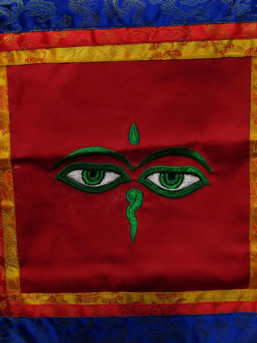 This is a beautiful silk brocade wall hanging from Nepal. At the center Buddha Eye image is embroidered, there is a high quality brocade border. They are handmade by the highly skilled and experienced local artisans in Nepal.