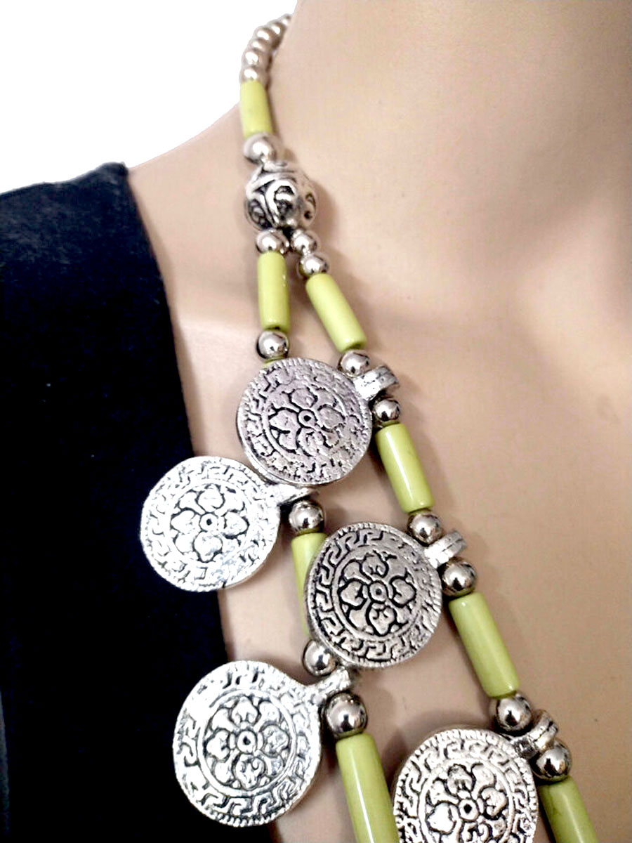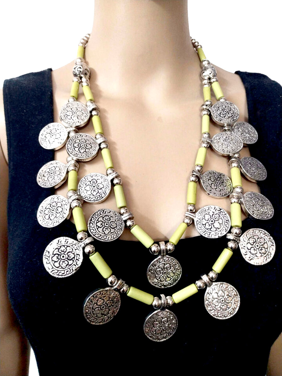 Tibetan GYPSY Resin Metal Bead 2 Strand Collar Tribal NECKLACE Women Jewelry - N23
