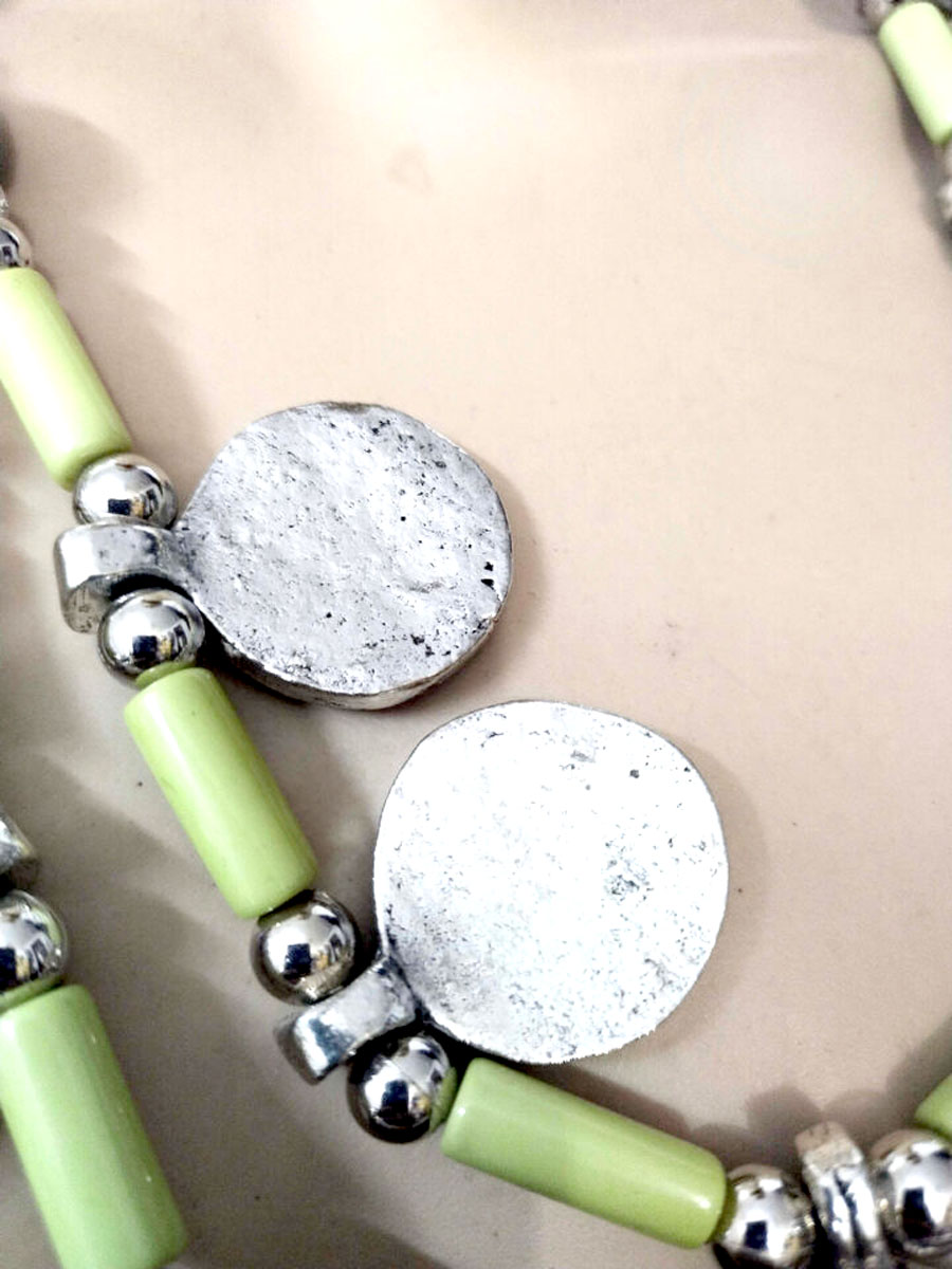 Tibetan Gypsy Resin and Metal Bead Two-Strand Collar Necklace