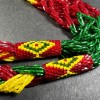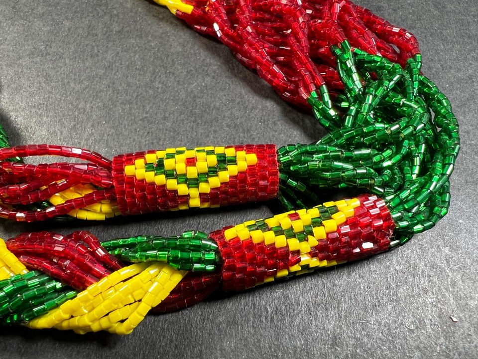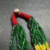 Usually made of tiny glass beads, the common color is green, but other colors like red and yellow are also seen.