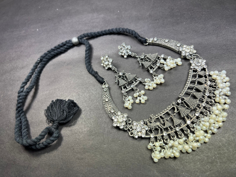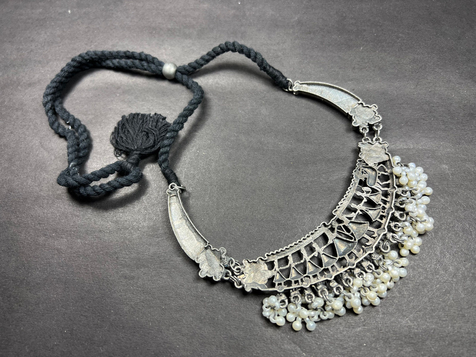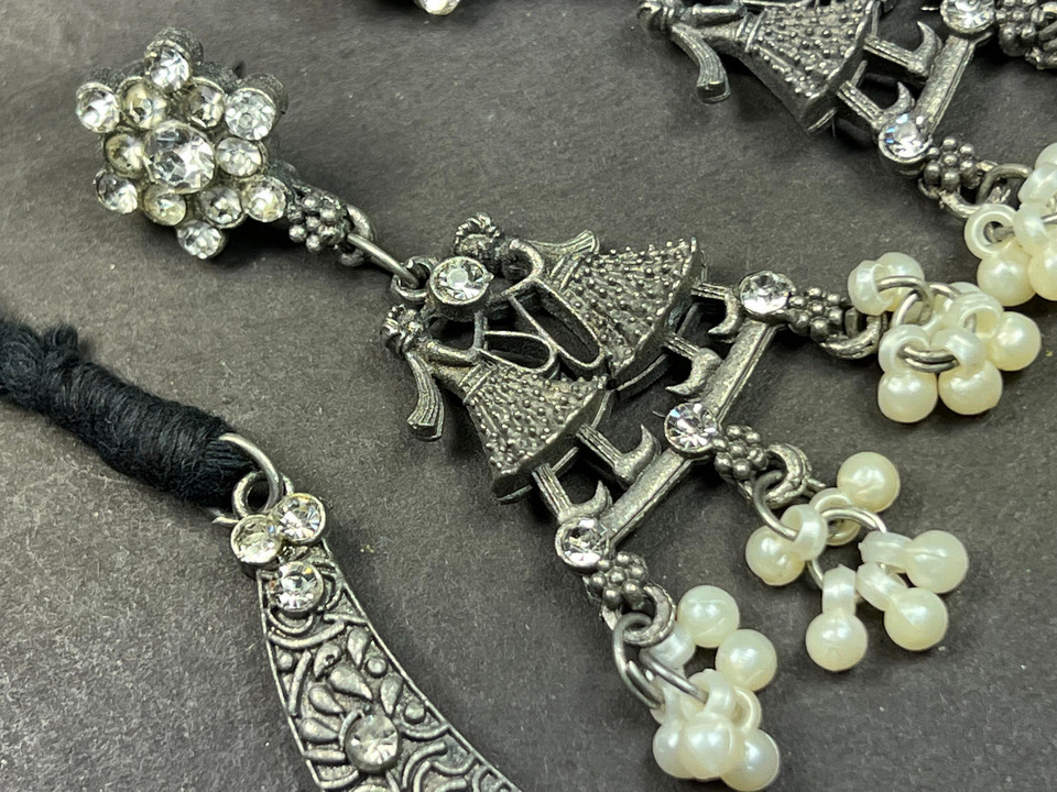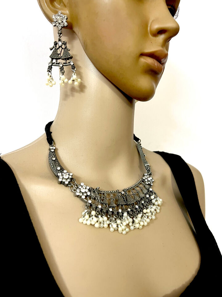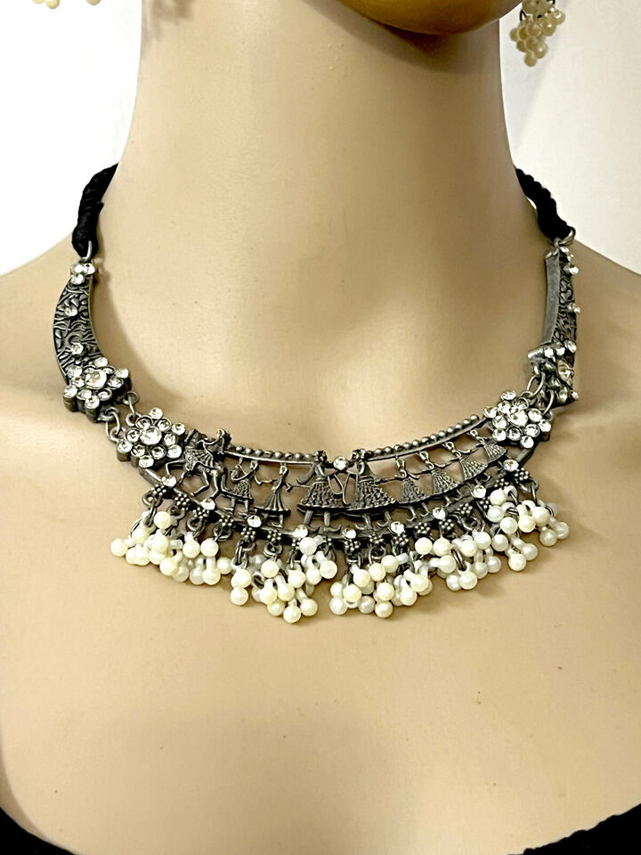 This is an ethnic, vintage, handcrafted, oxidized choker style Antiqued Tone Necklace from India (Brand New).