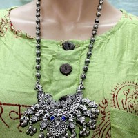 Vintage Oxidized CHOKER Bells Glass Bohemian Gypsy Banjara Ethnic Necklace-N7662