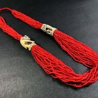 Tribal Ethnic Gypsy Glass Multi Strand Elephant CARVED Handmade NECKLACE-N3434A