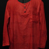 Unisex Long sleeve Block Printed Om Yoga Summer Shirt Top Kurta Nepal-Sh1011